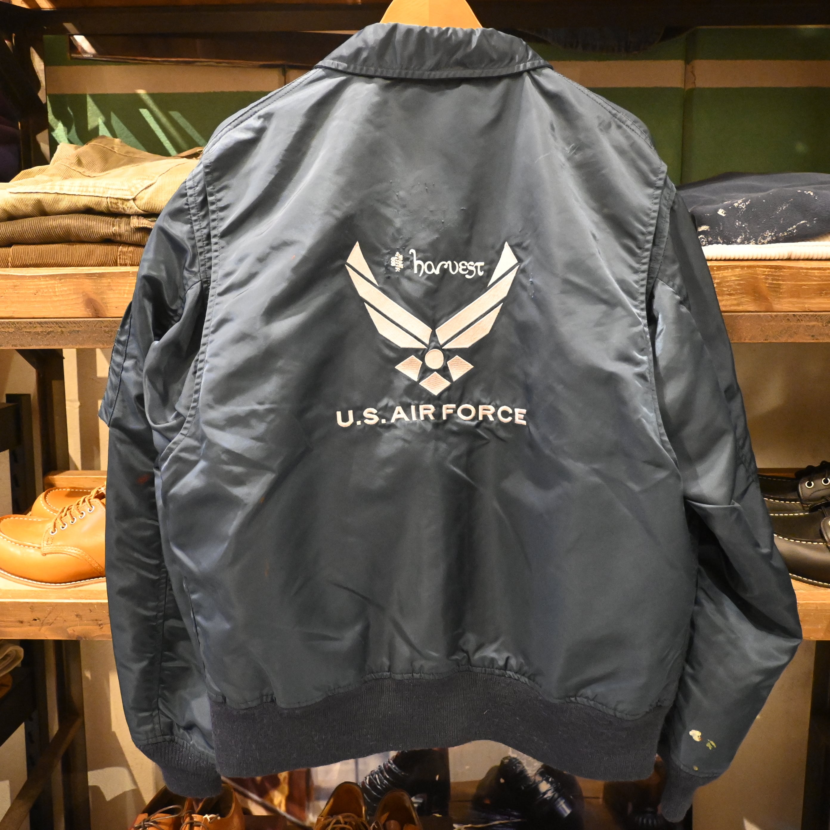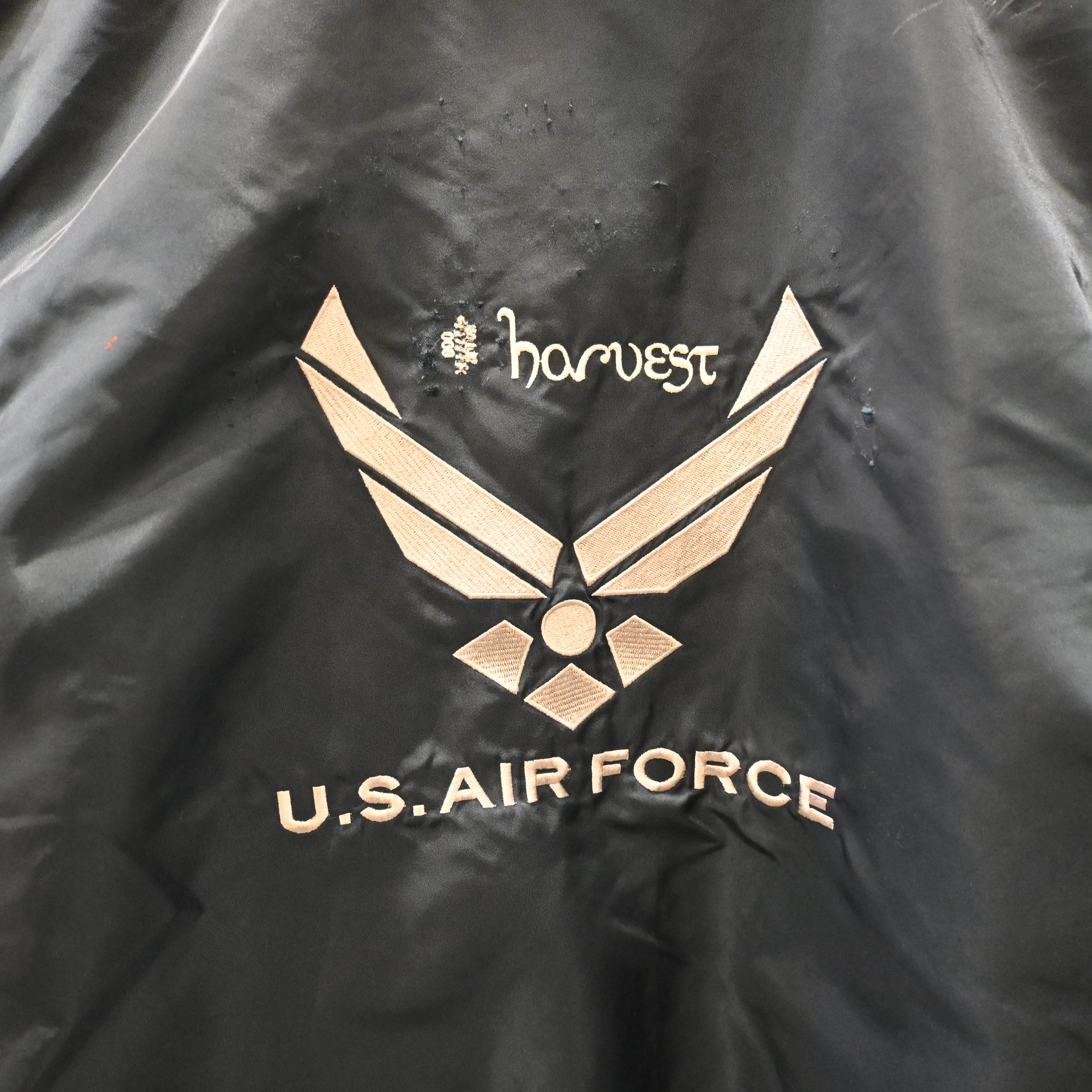 90〜00年代頃の希少な個体で、背面に「U.S. AIR FORCE」ロゴと「harvest」の刺繍が施された存在感ある一着です。