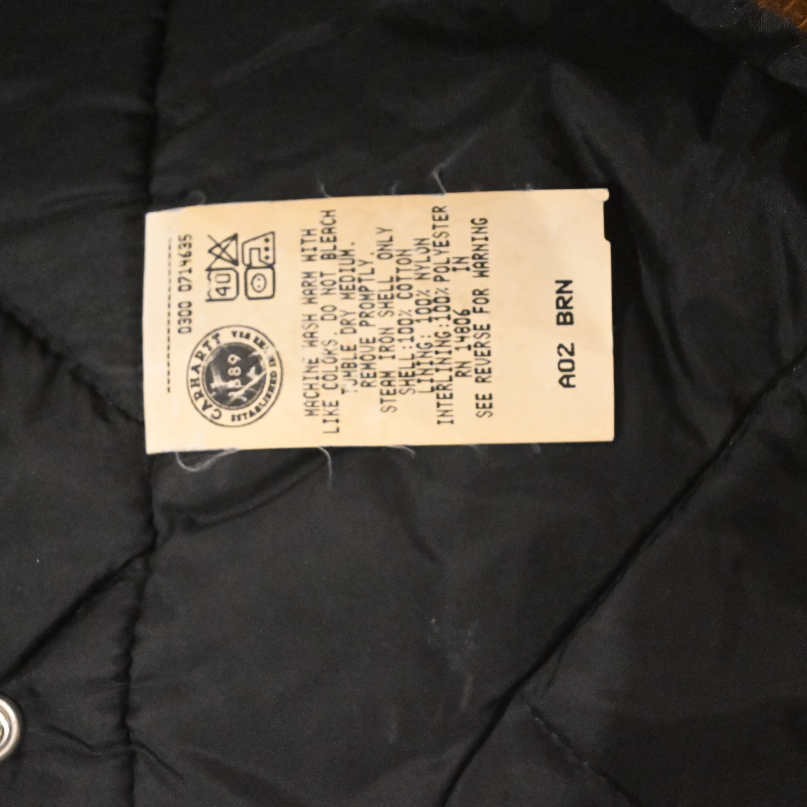 表地はタフなダックキャンバス、裏地にはナイロンキルティング生地を採用。寒冷地での防風性・保温性を確保しながら、クラシックなCarharttらしい無骨なルックスを演出します。