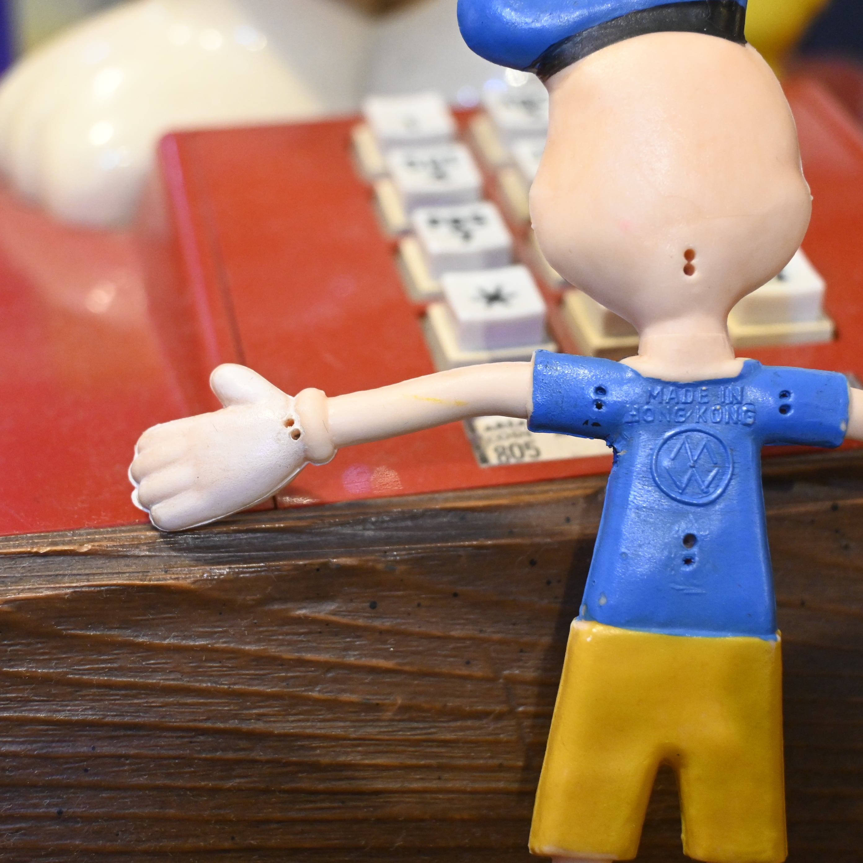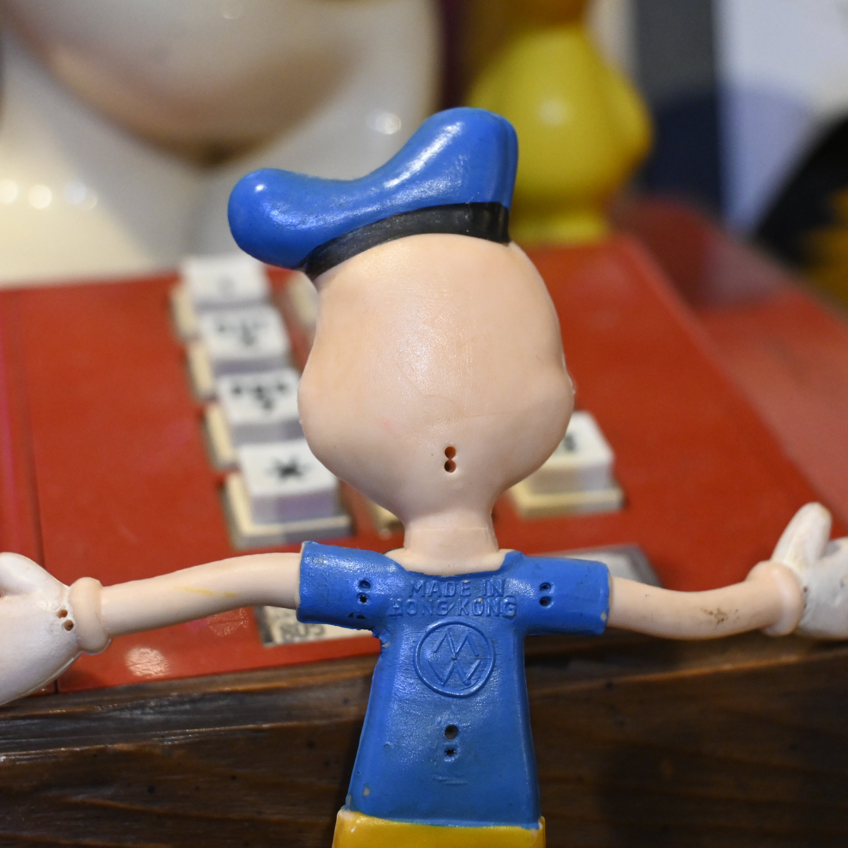 クラシックな配色とユーモラスな表情が特徴で、当時のプラスチックトイらしい独特の質感を楽しめる一点です。