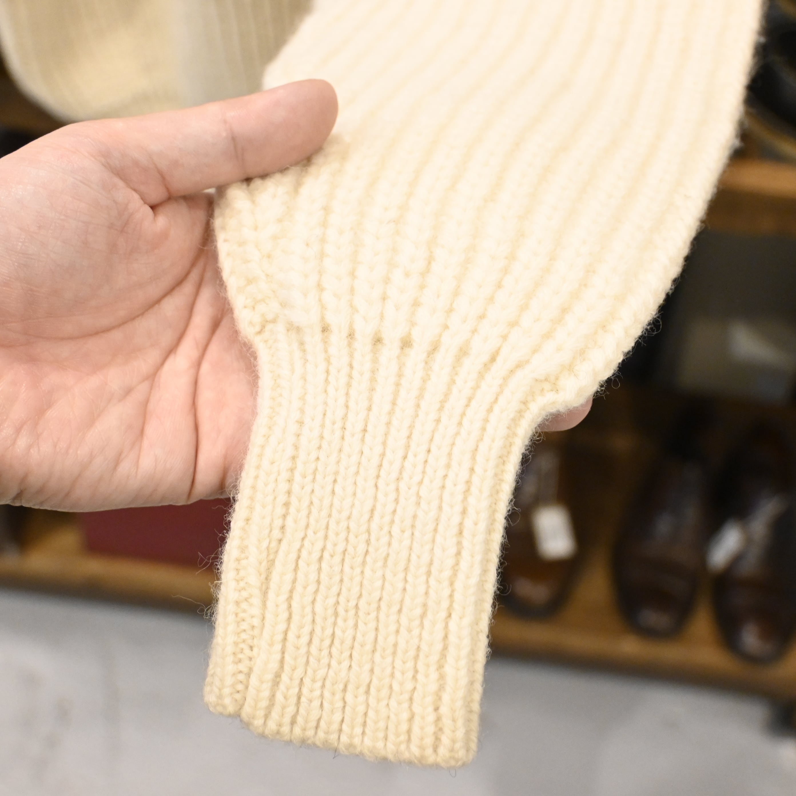 リブのテンションも良好で、シルエットのバランスを崩すことなく着用可能。クラシックなアメリカンニットをお探しの方におすすめです。