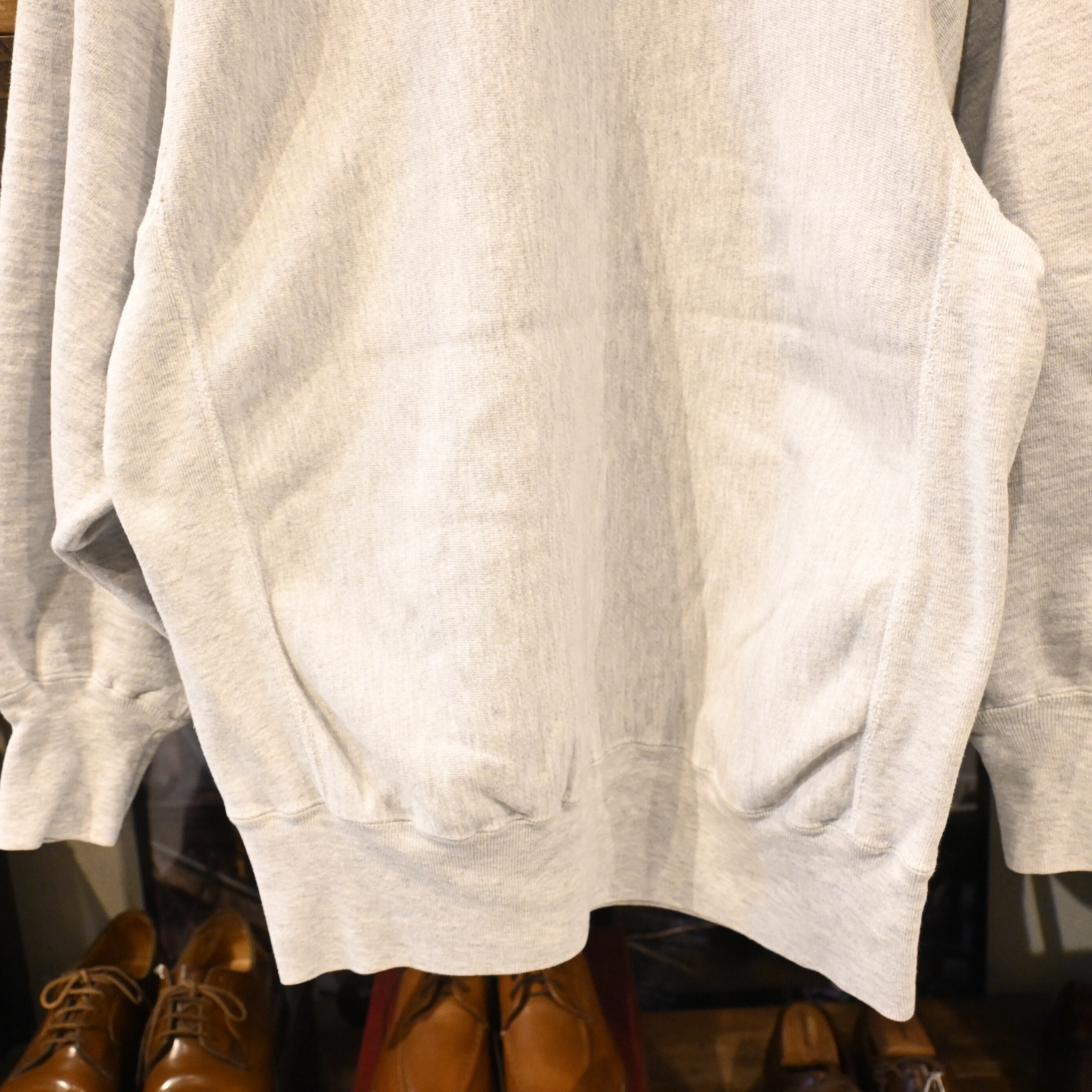 ボディは人気の霜降りグレー。しっかりとした厚みと柔らかな風合いを兼ね備えたコットン×ポリ混紡のリバースウィーブ生地。