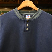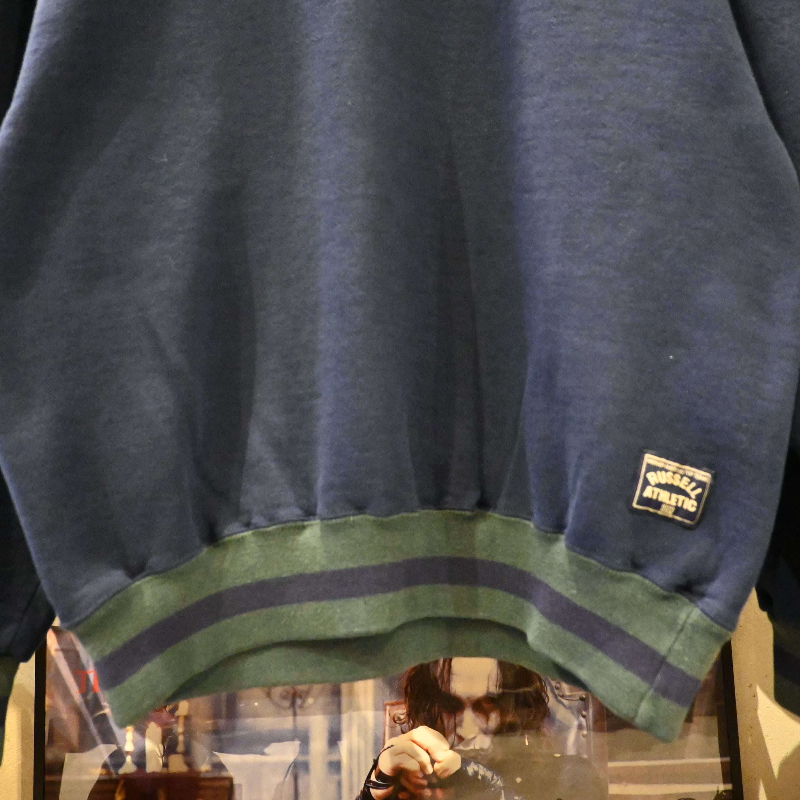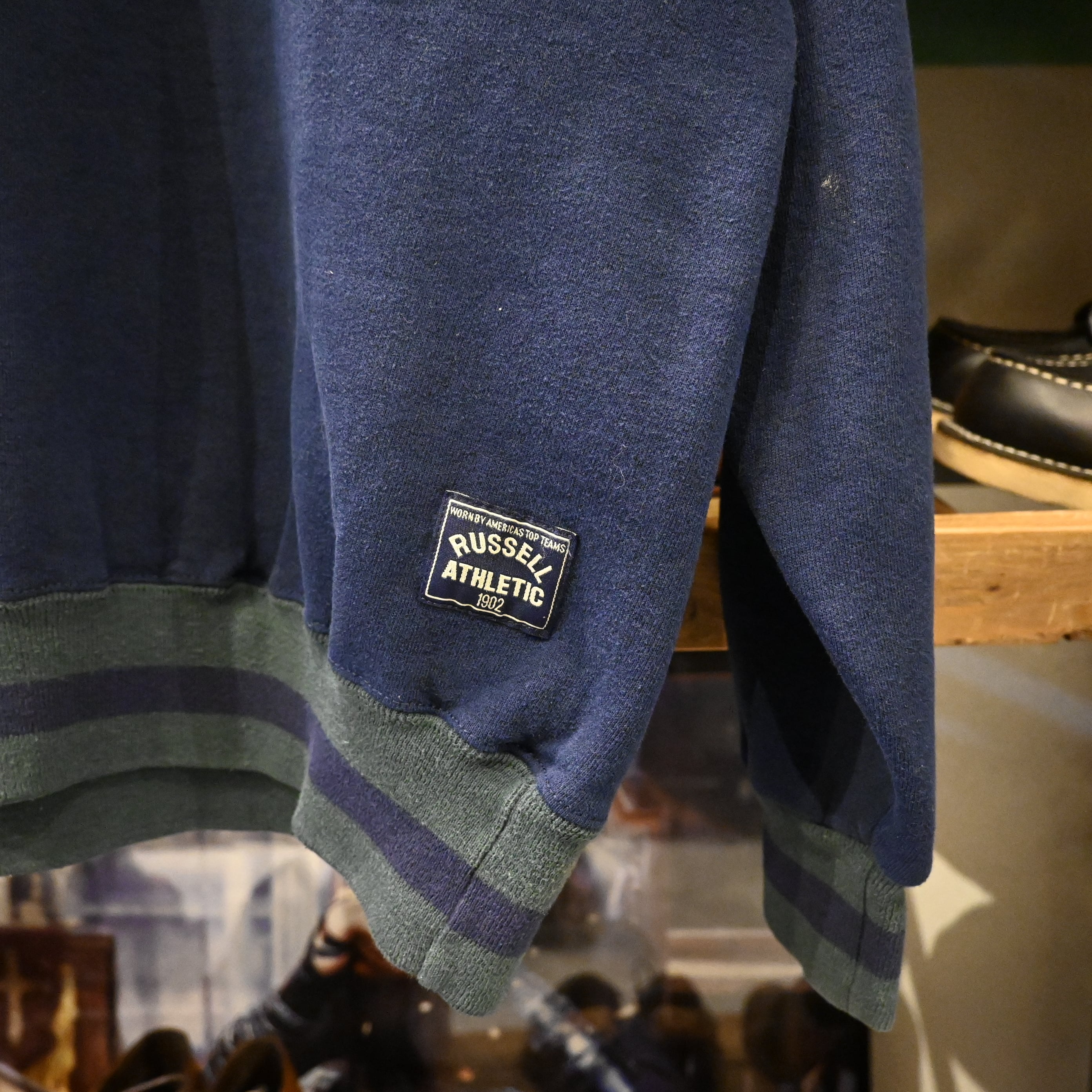 [ L ] RUSSELL ATHLETIC 90‘s USA製 Henley Neck Sweatshirt, Navy-Green