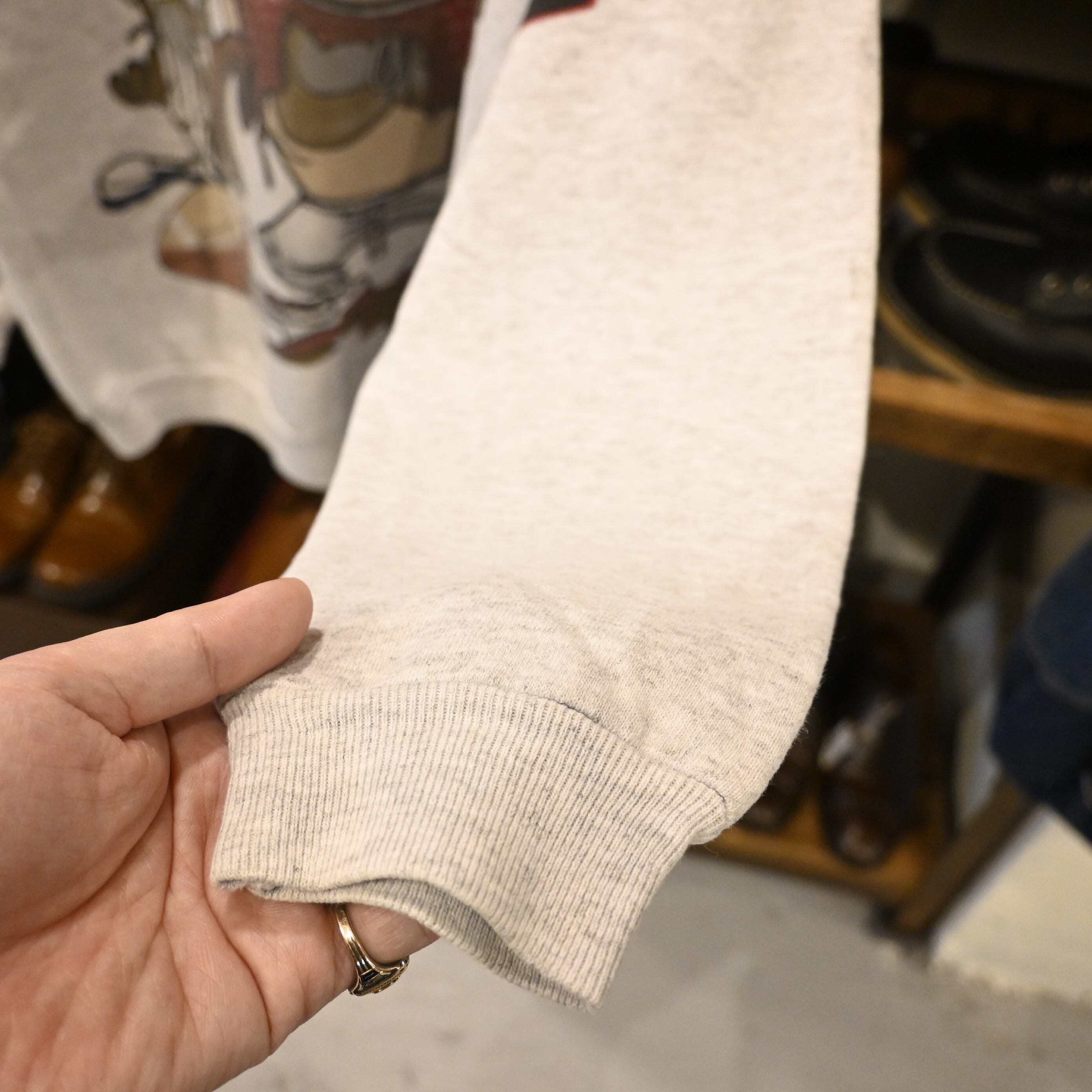アメリカ製キャラクタースウェットらしいポップなプリントと、グレーボディの柔らかな風合いが魅力の一枚です。