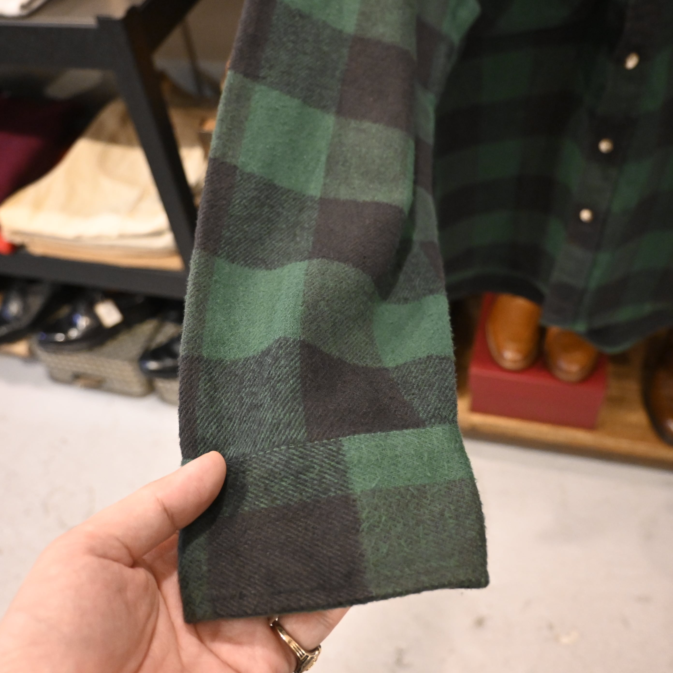 グリーン×ブラックのクラシックな配色で、起毛感のあるコットンフランネル素材を使用。