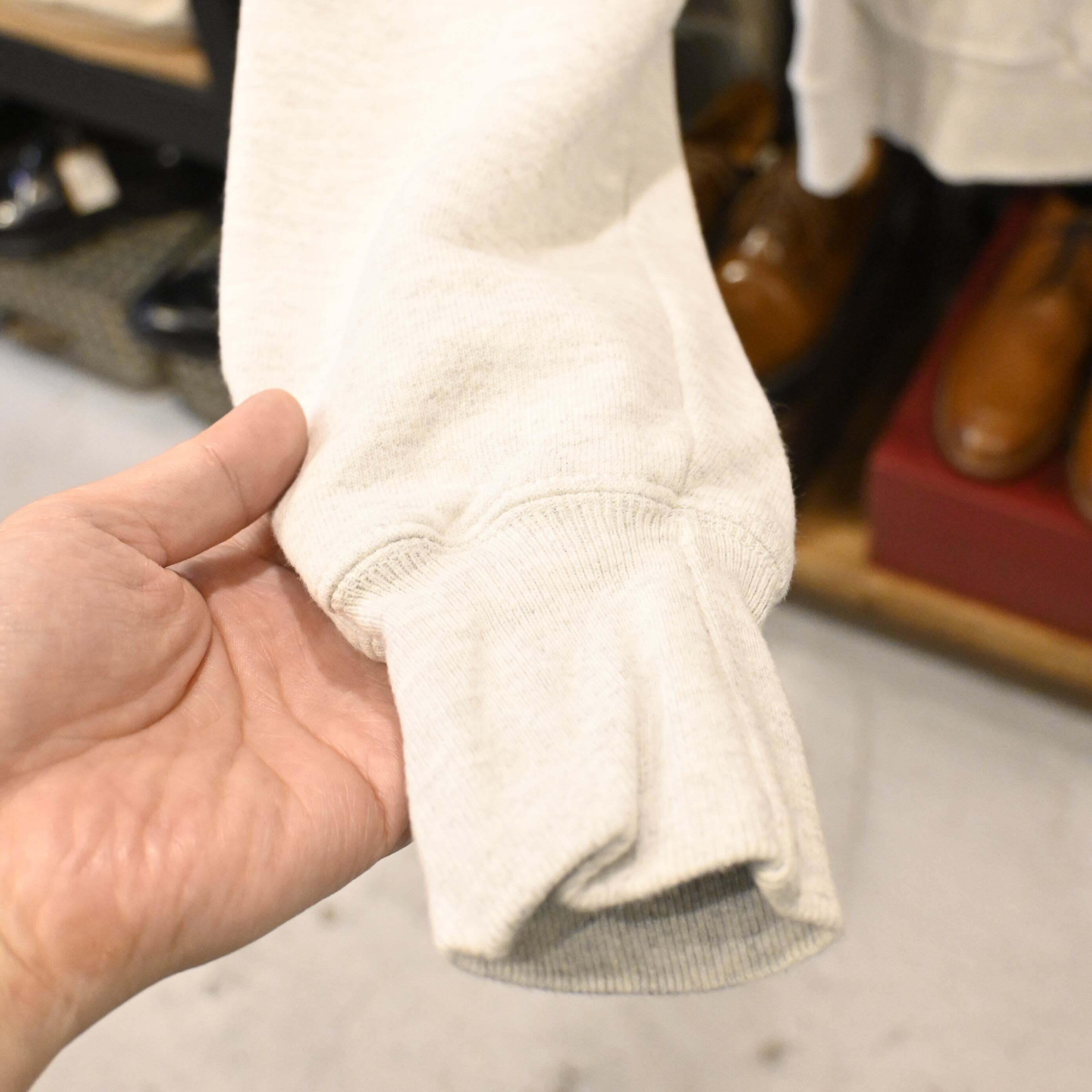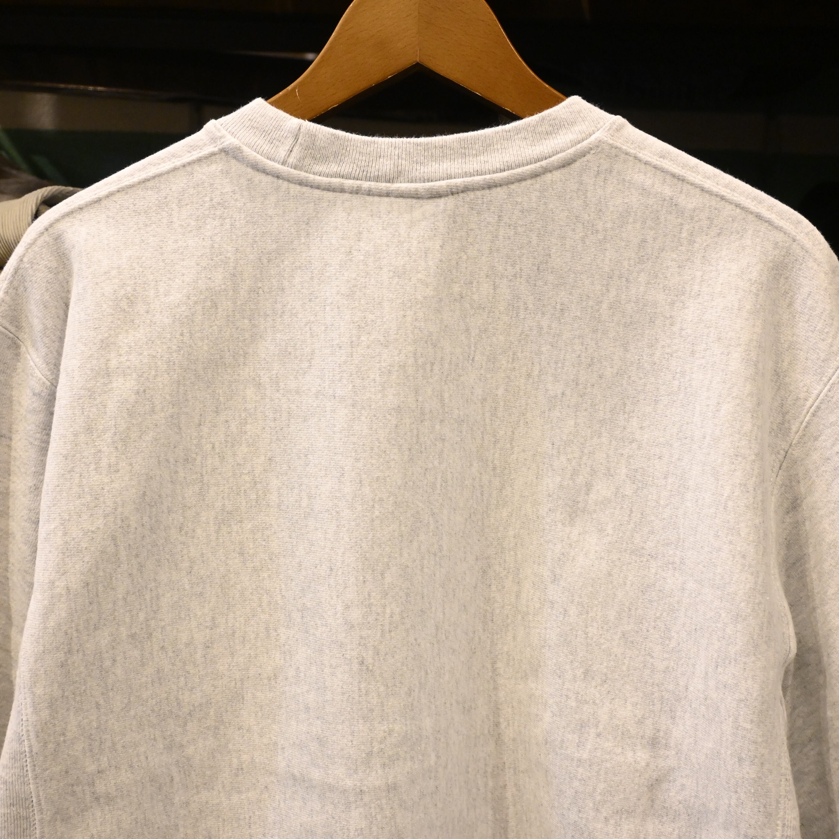程よくフェードしたブラックプリントと、リバースウィーブ特有のしっかりとした生地感が魅力。