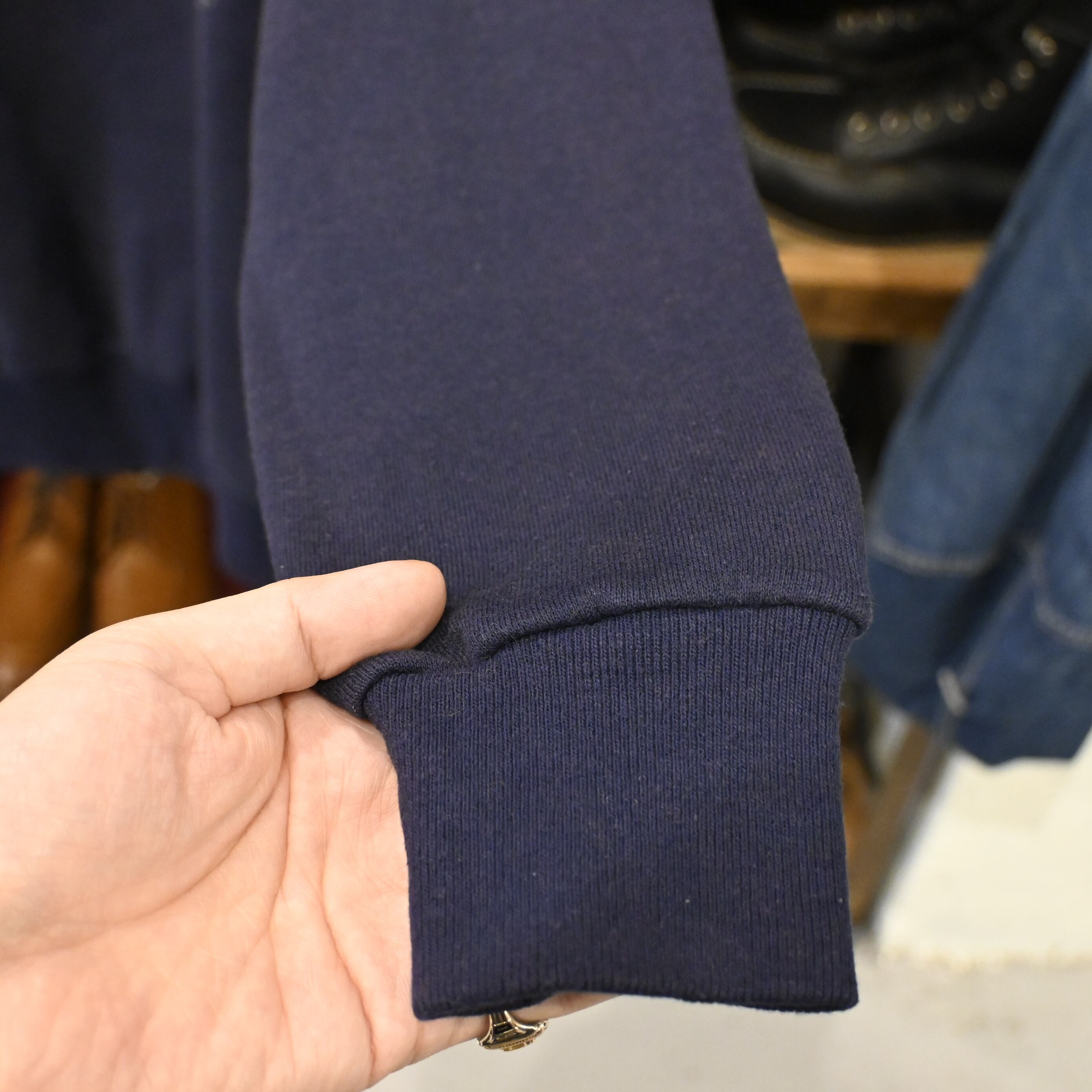 ボディは“SANTEE Sweats”製のMADE IN U.S.A。ふっくらとした裏起毛の質感と肉厚な生地感が特徴で、当時らしいタフな作りが魅力。