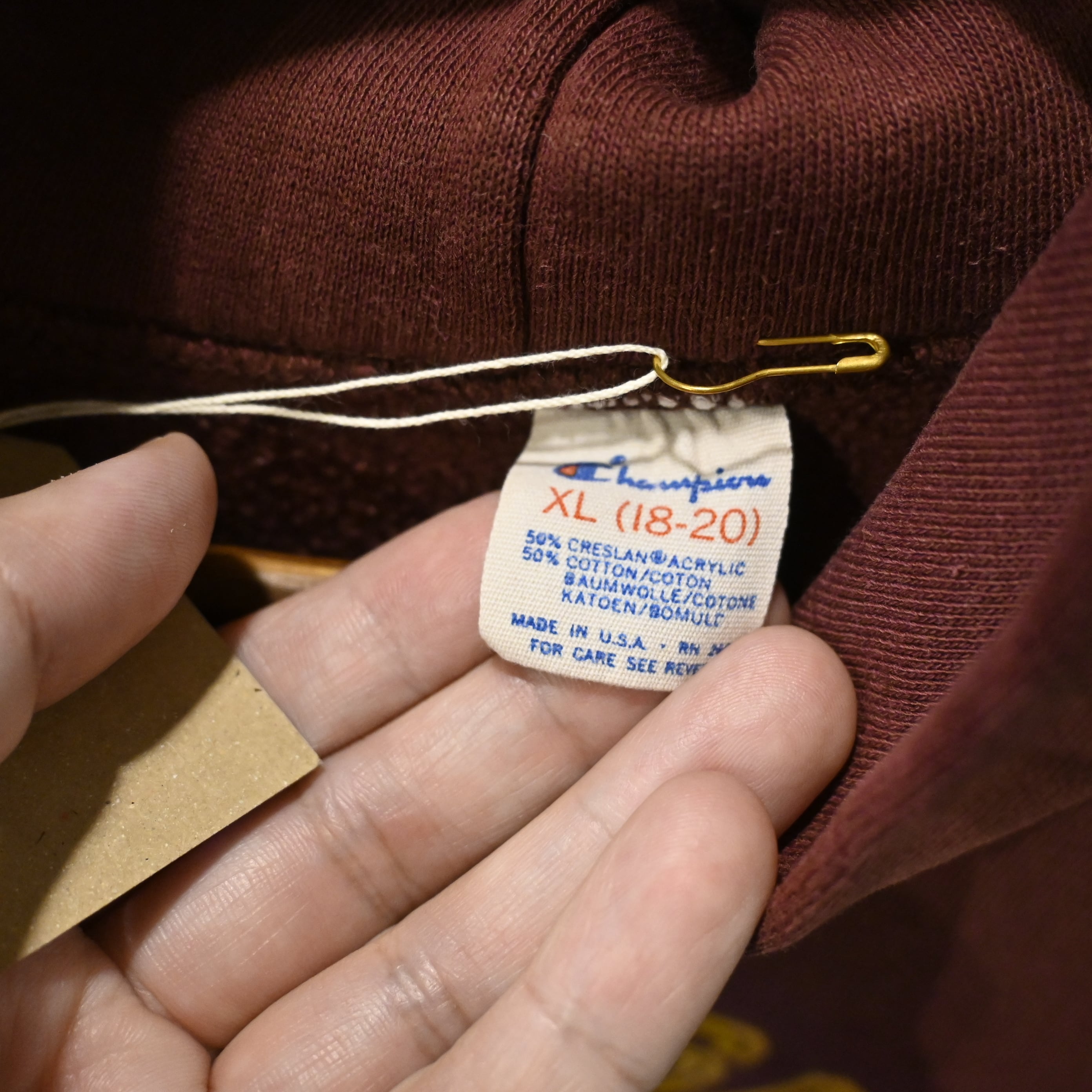 [ Boys XL 18-20 ] Champion 80-90`s USA製 "MINNESOTA" Sweat Hoodie , Bargandy