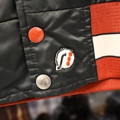 フロント左胸と背面にチームロゴ刺繍を配置した存在感のあるデザインで、ブラック×レッド×ホワイトのトリコロール配色が印象的な一着です。