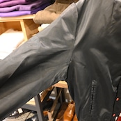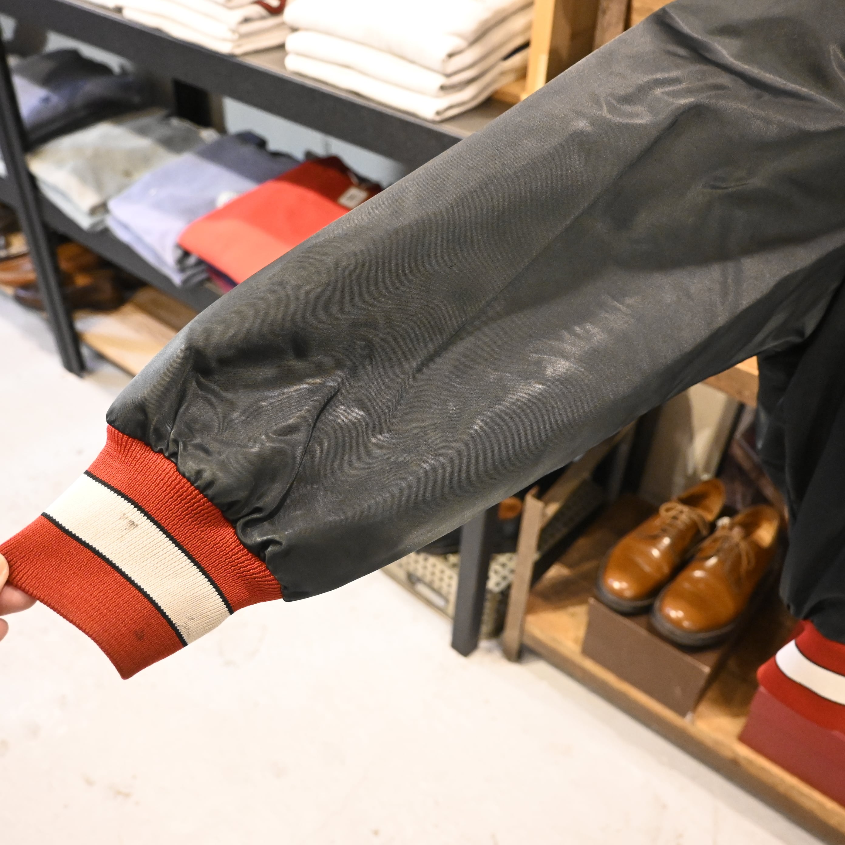 ナイロン特有の光沢感とリブラインのアクセントが、90年代のアメリカンストリートを彷彿とさせます。
