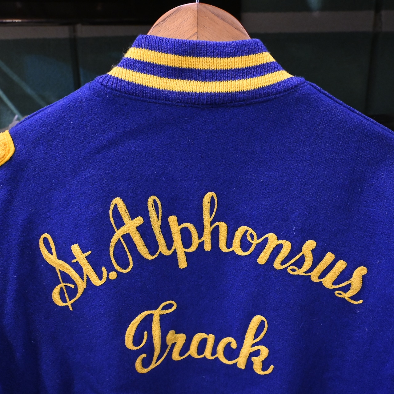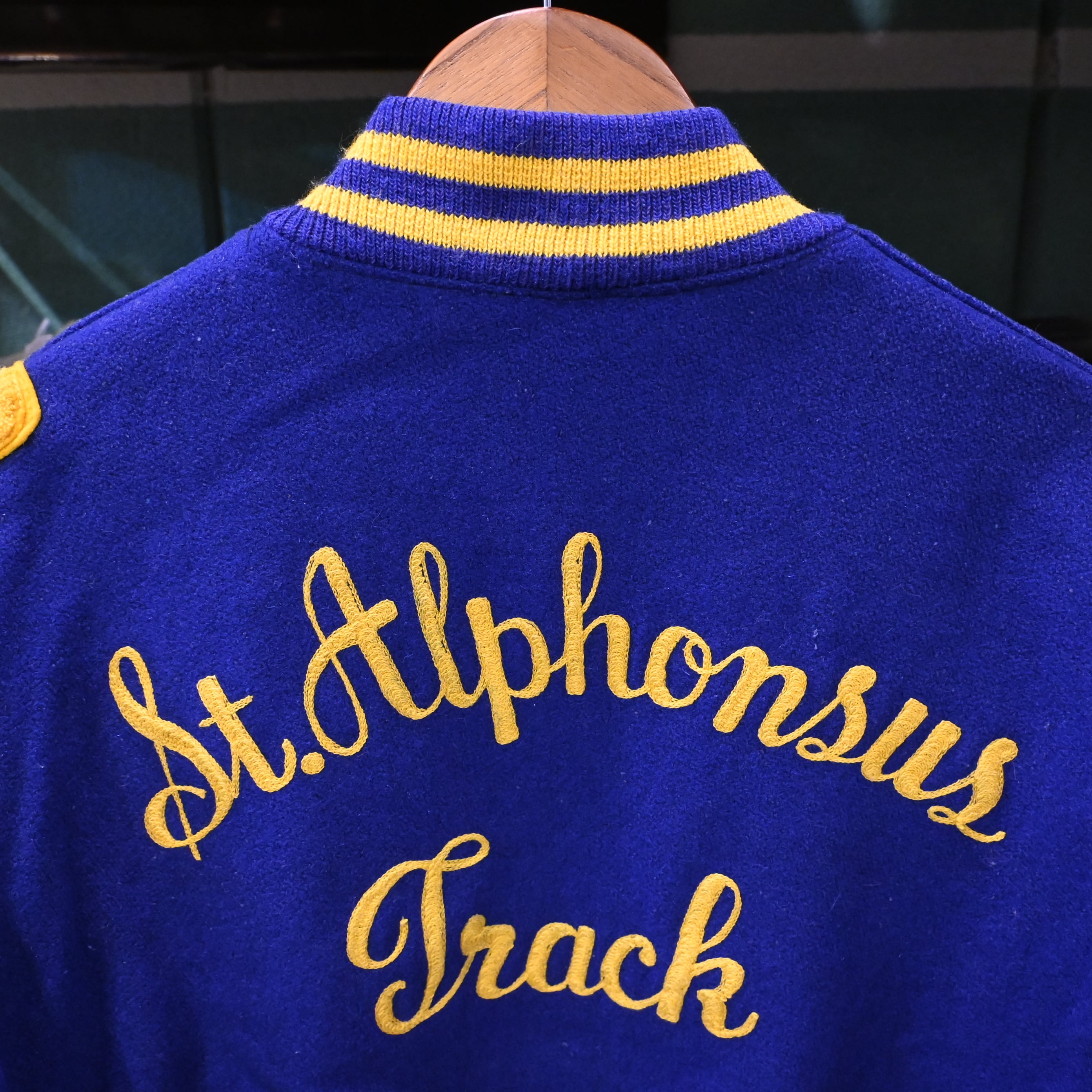 チーム名「St. Alphonsus Track」が背面にチェーンステッチで施された一着です。