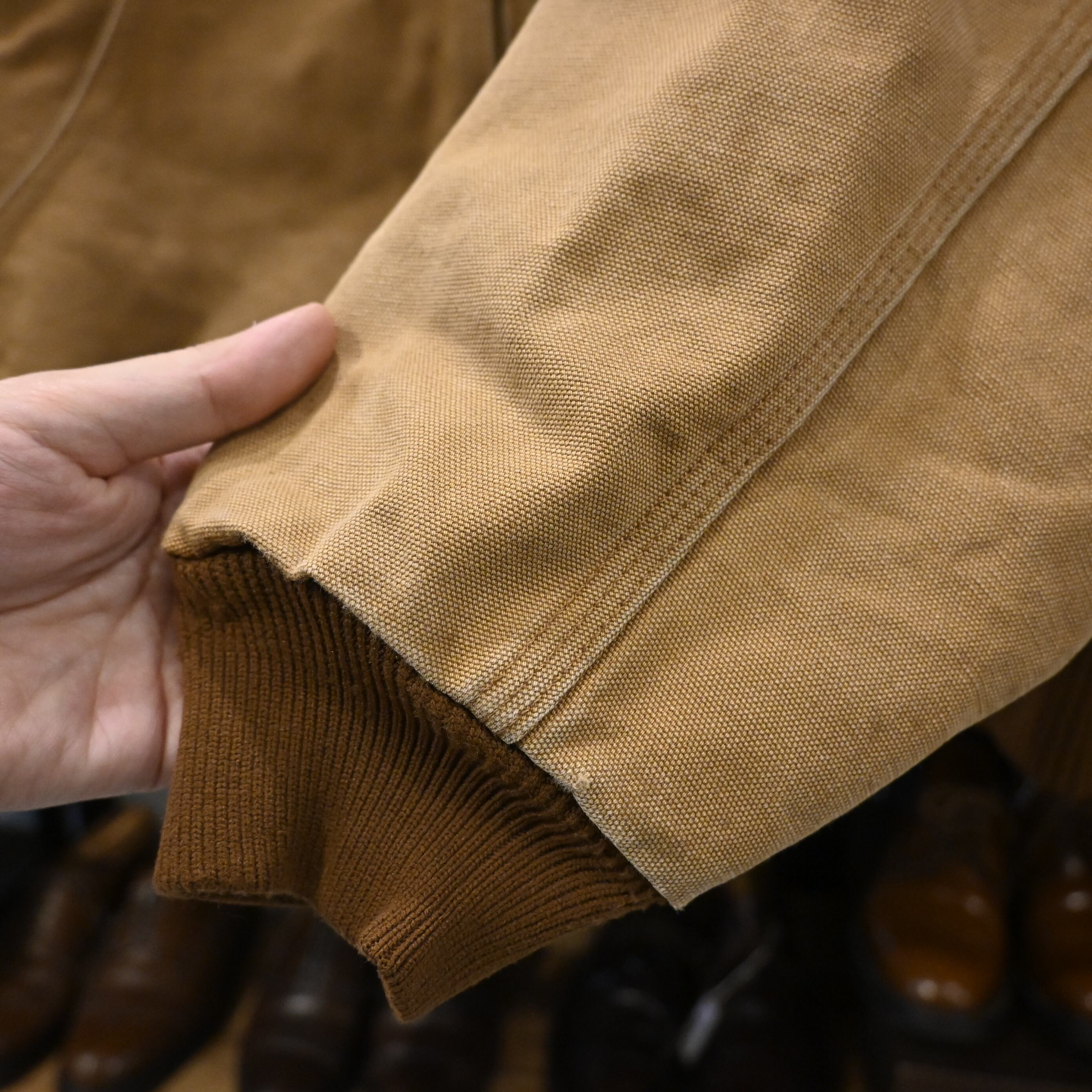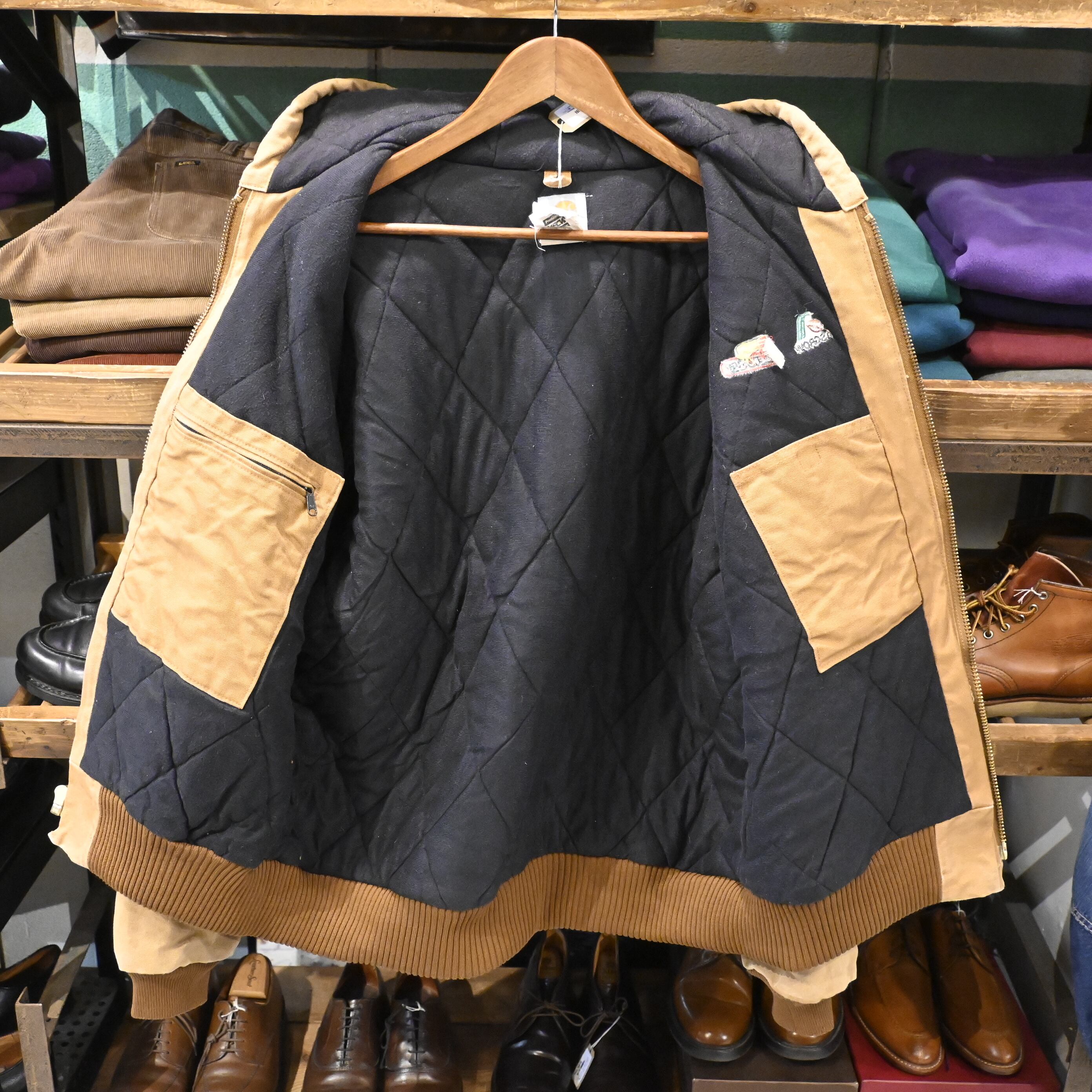 タフなブラウンダック生地にキルティングライナーを備えた、ブランドを象徴するヘビーデューティな一着です。