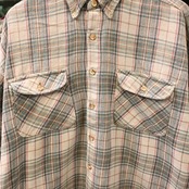 [ L ] Shortwave 90-00`s Mauritius製 Tartan Check Flannel Shirt , Beige-Green
