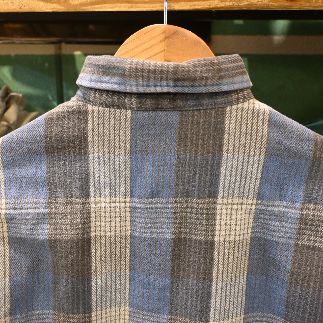 ブルー×グレーチェック フランネルシャツ Mサイズ相当