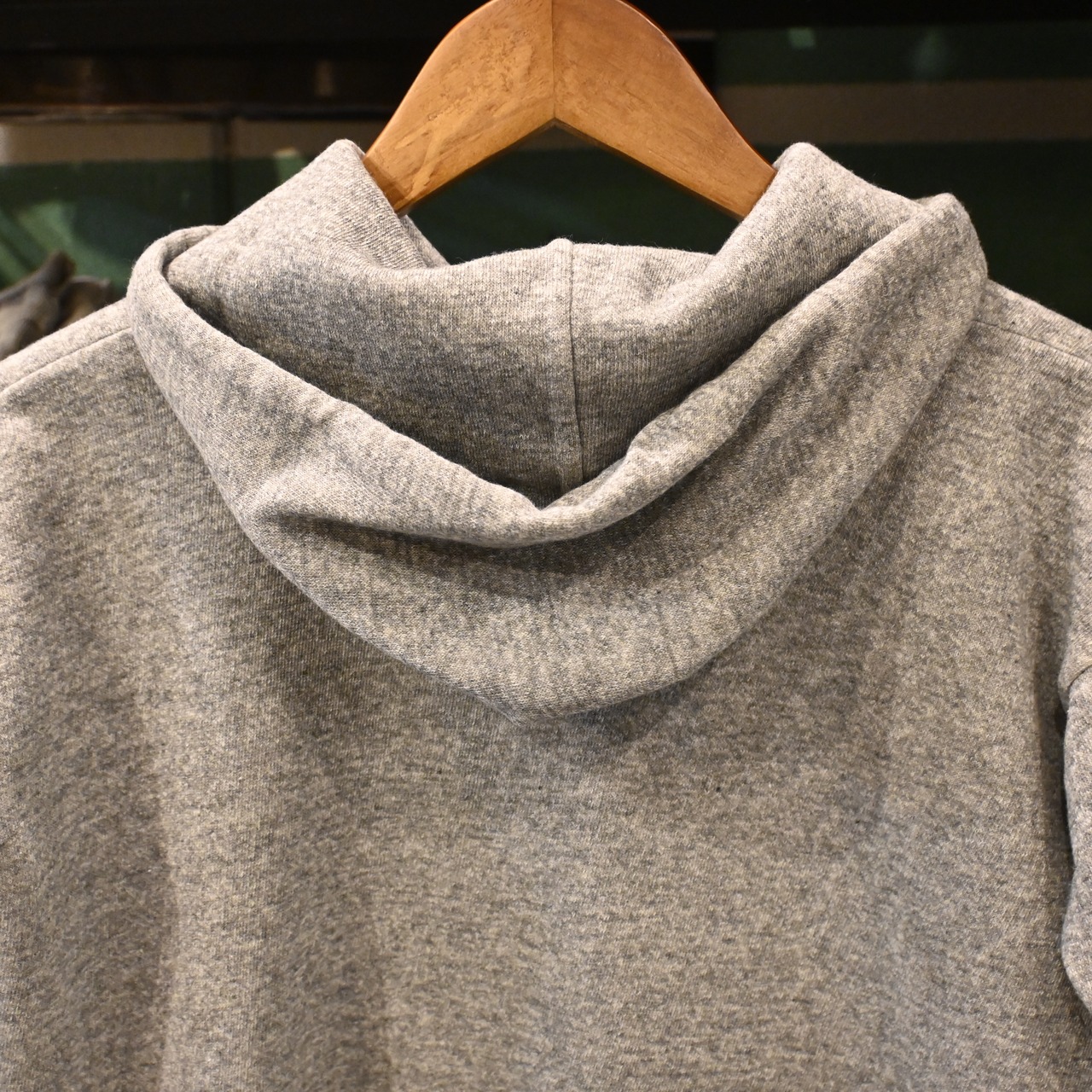 柔らかくふっくらとした裏起毛が特徴の、グレーメランジのフルジップパーカー。