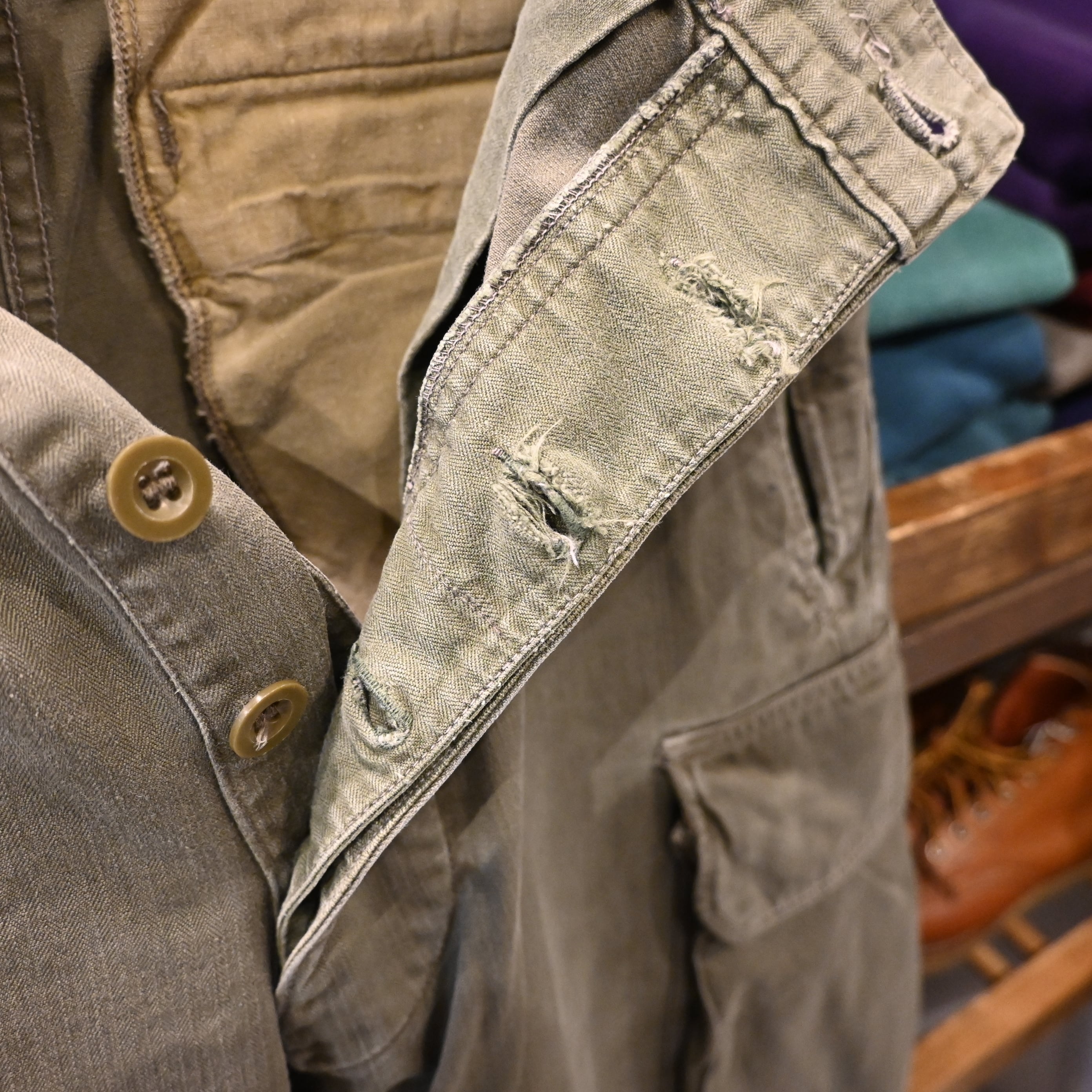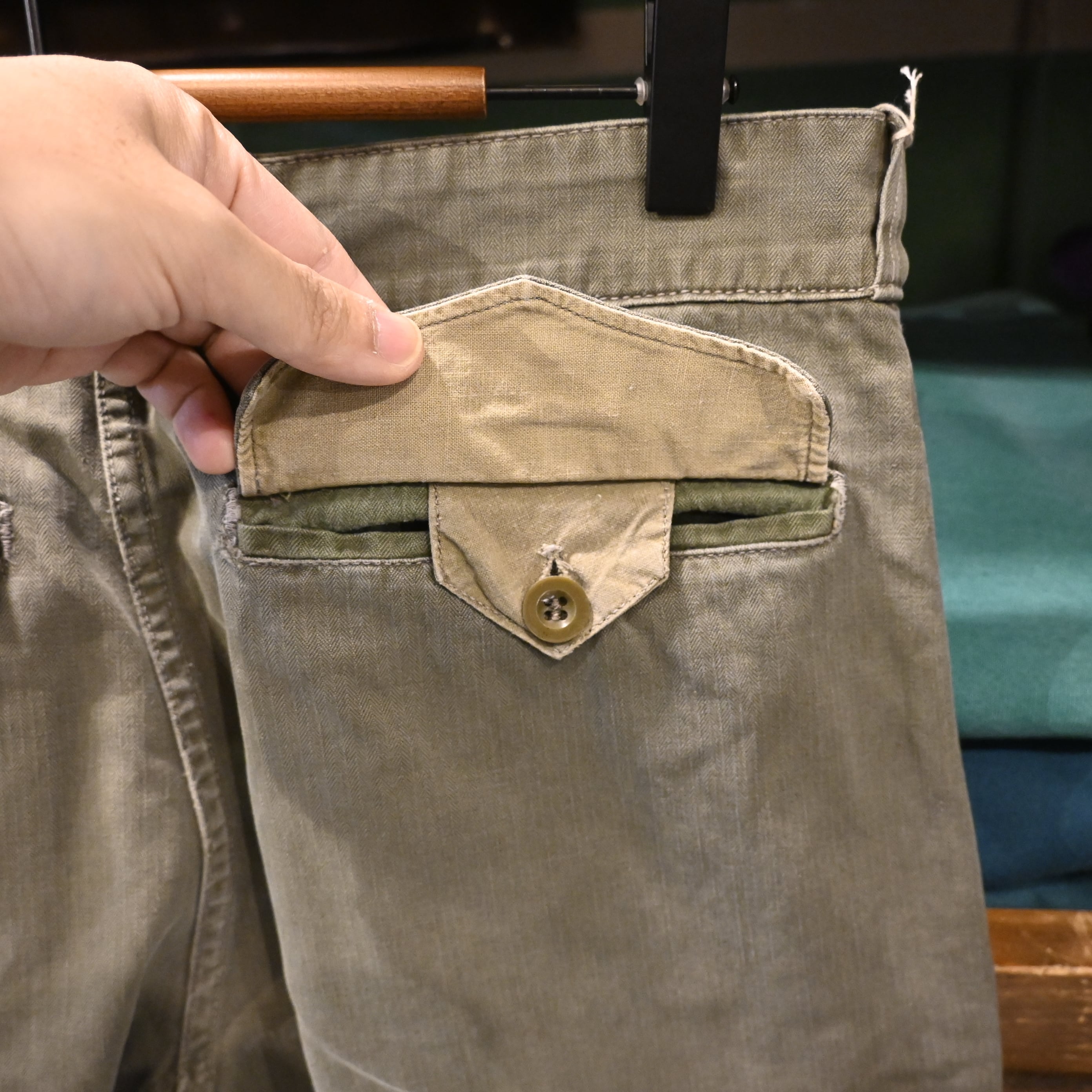 フランス軍の名作フィールドパンツ〈M-47〉、こちらは後期型(Late Model)のヘリンボーンツイル仕様です。