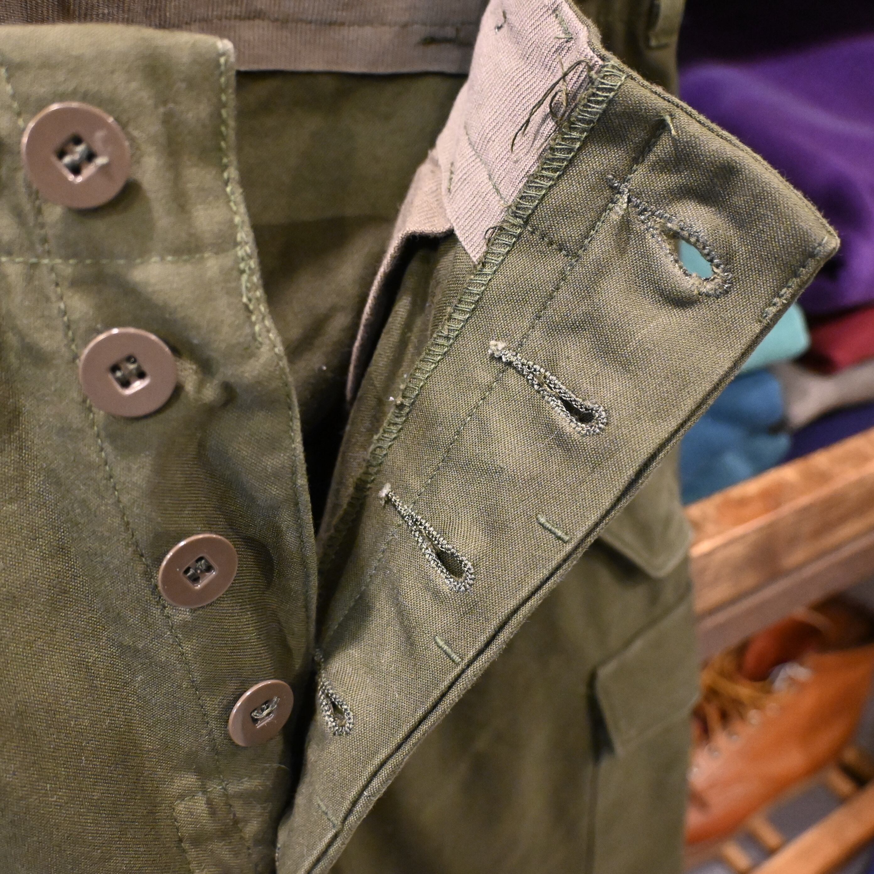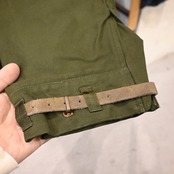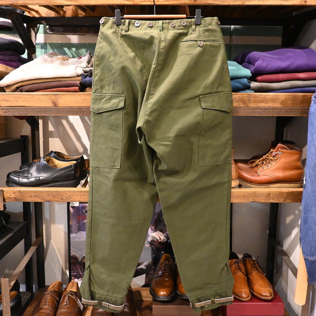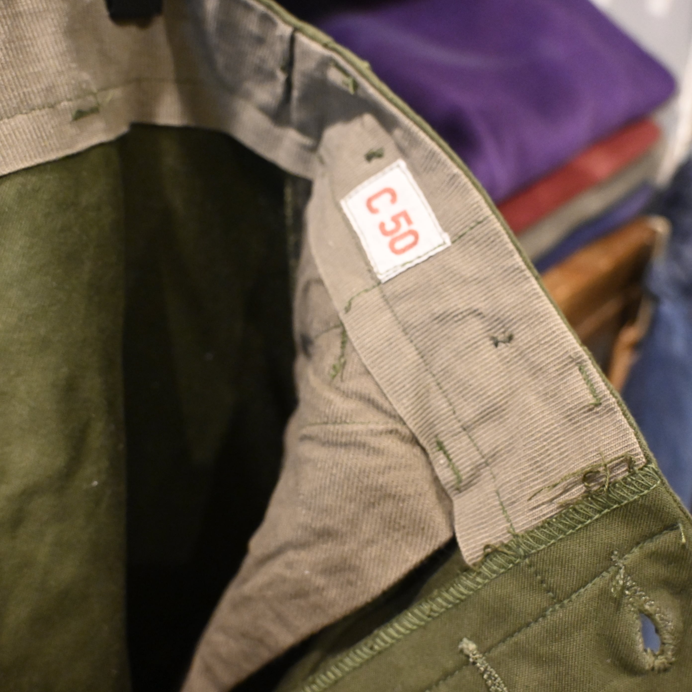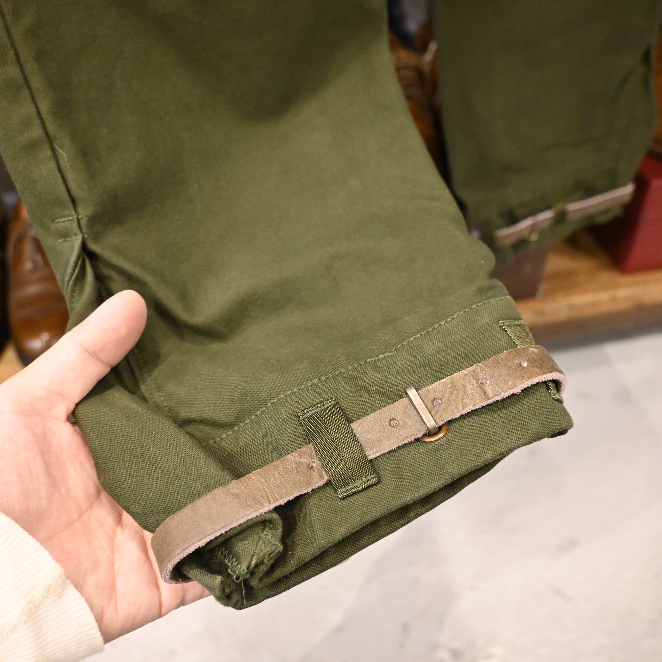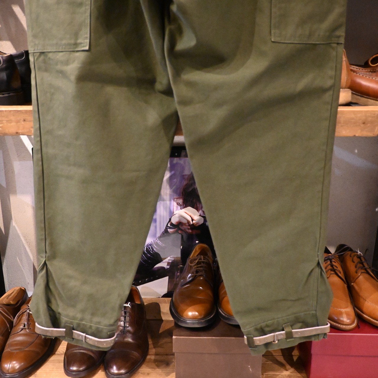 しっかりとしたコットンツイル生地を使用し、スウェーデン特有の鮮やかなオリーブの色味は無骨ながらもヨーロッパらしい上品さを感じさせる一本です。