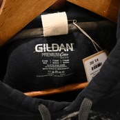 ボディは〈GILDAN Premium Cotton〉製で、柔らかく厚みのある裏起毛スウェット素材。