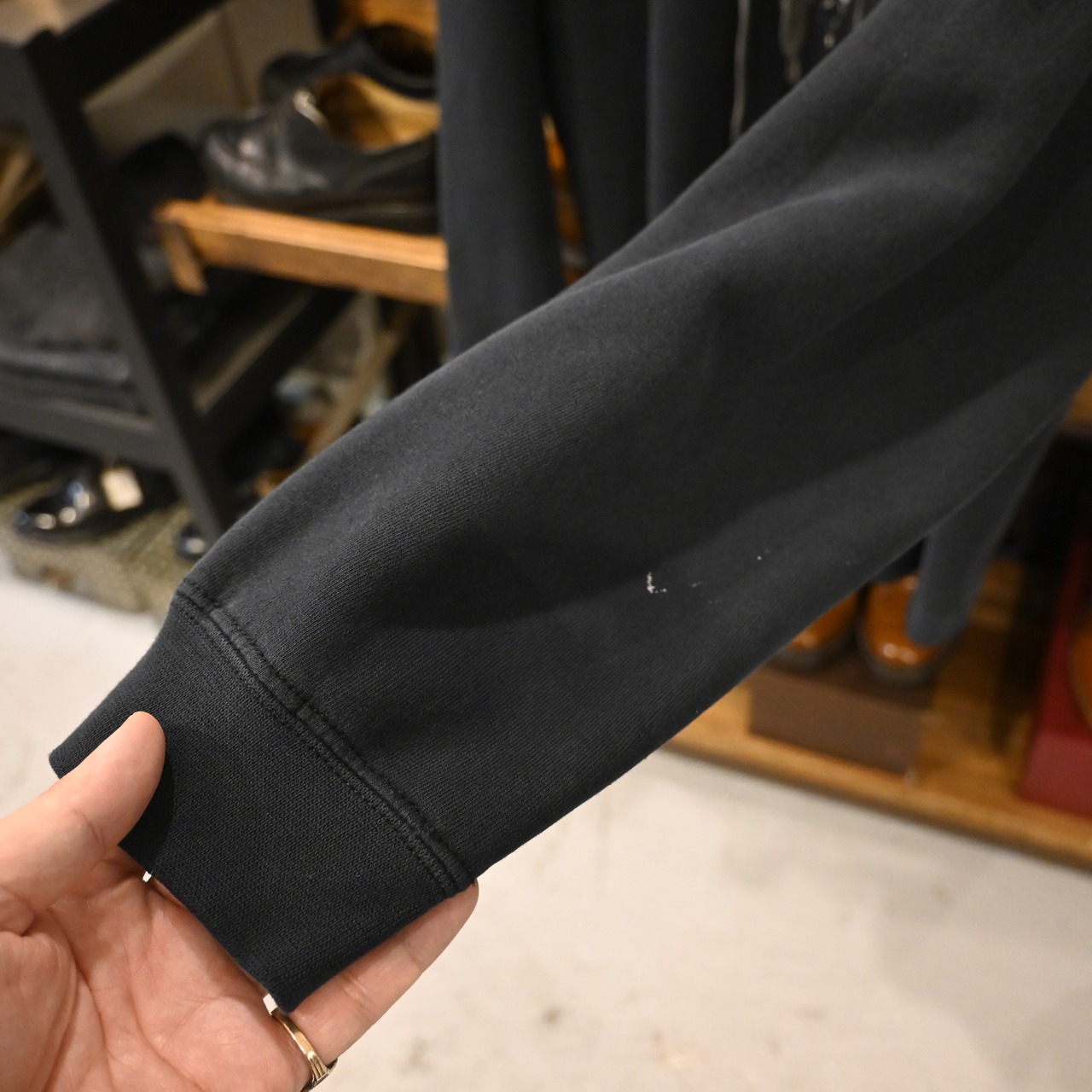 ややフェードしたブラックの風合いがヴィンテージライクな雰囲気を演出します。