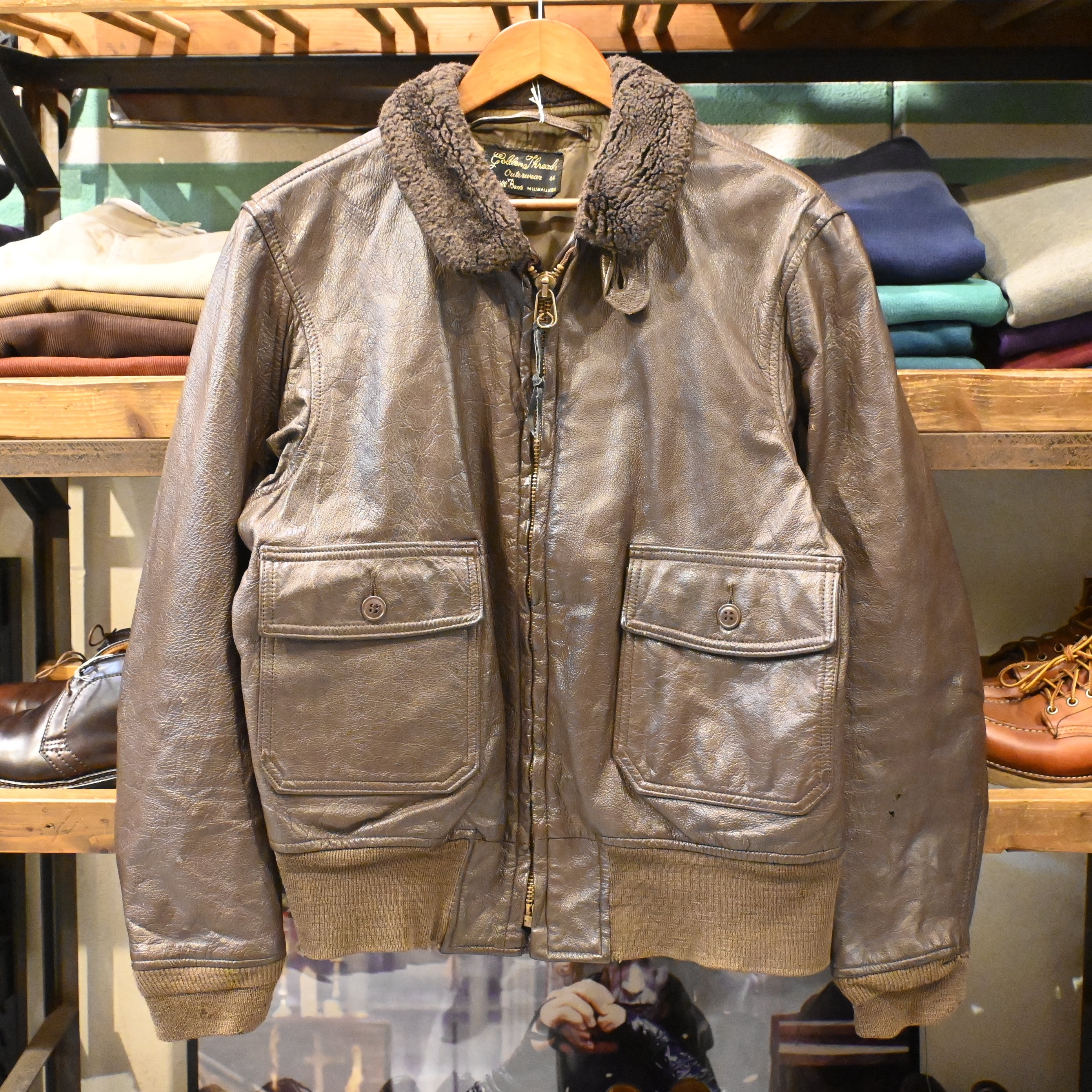 Golden Threads Outerwear 80–90s G-1 Type Leather Jacket/ムートン襟/ブラウン
