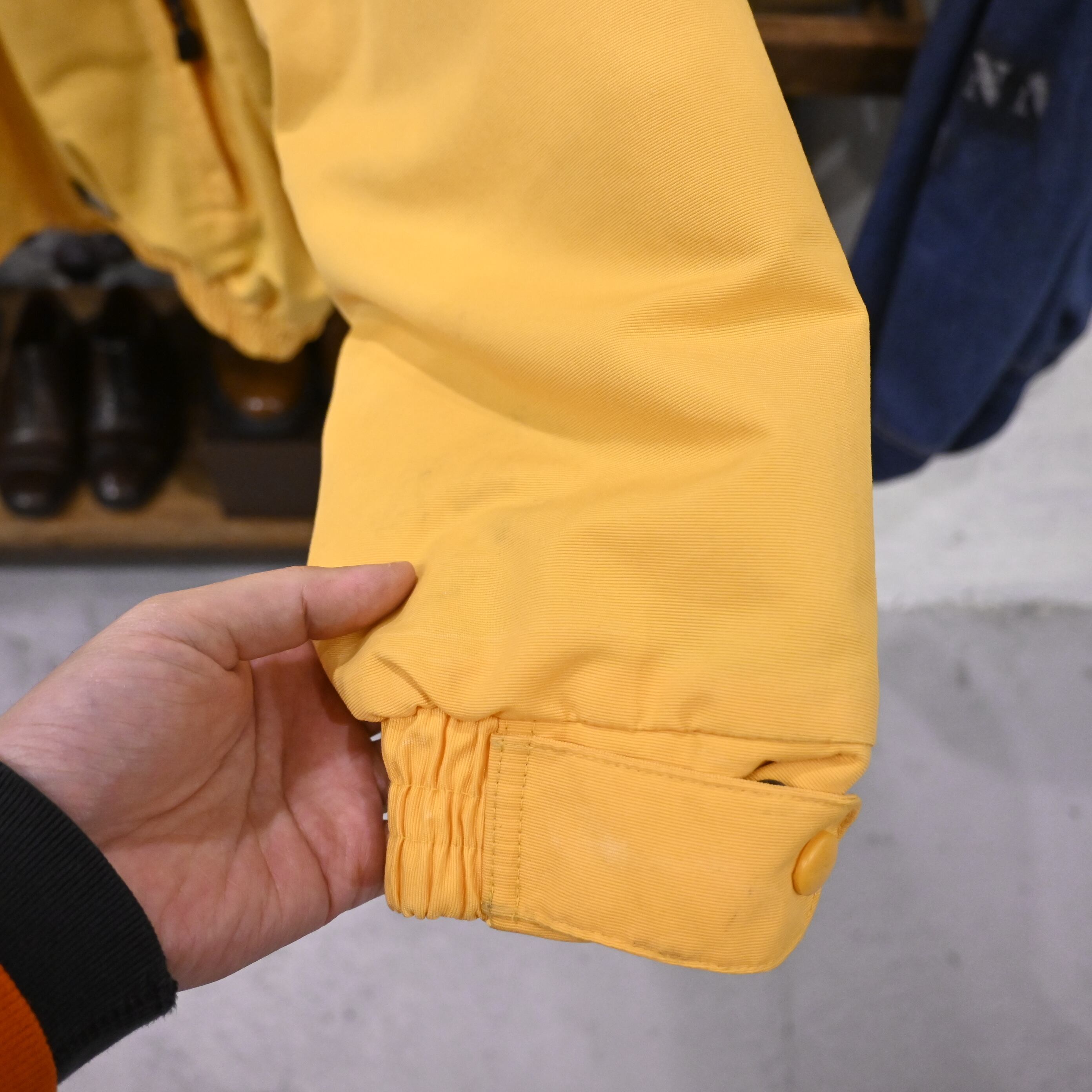 外側は軽く強度のあるナイロンシェル、内側は厚手フリースライニングで防寒性もしっかり備えています。裾と袖口はゴムギャザー仕様で、丸みのある90’sらしいシルエット。フロントには両側ジップポケット、内側にもジップポケット付き。