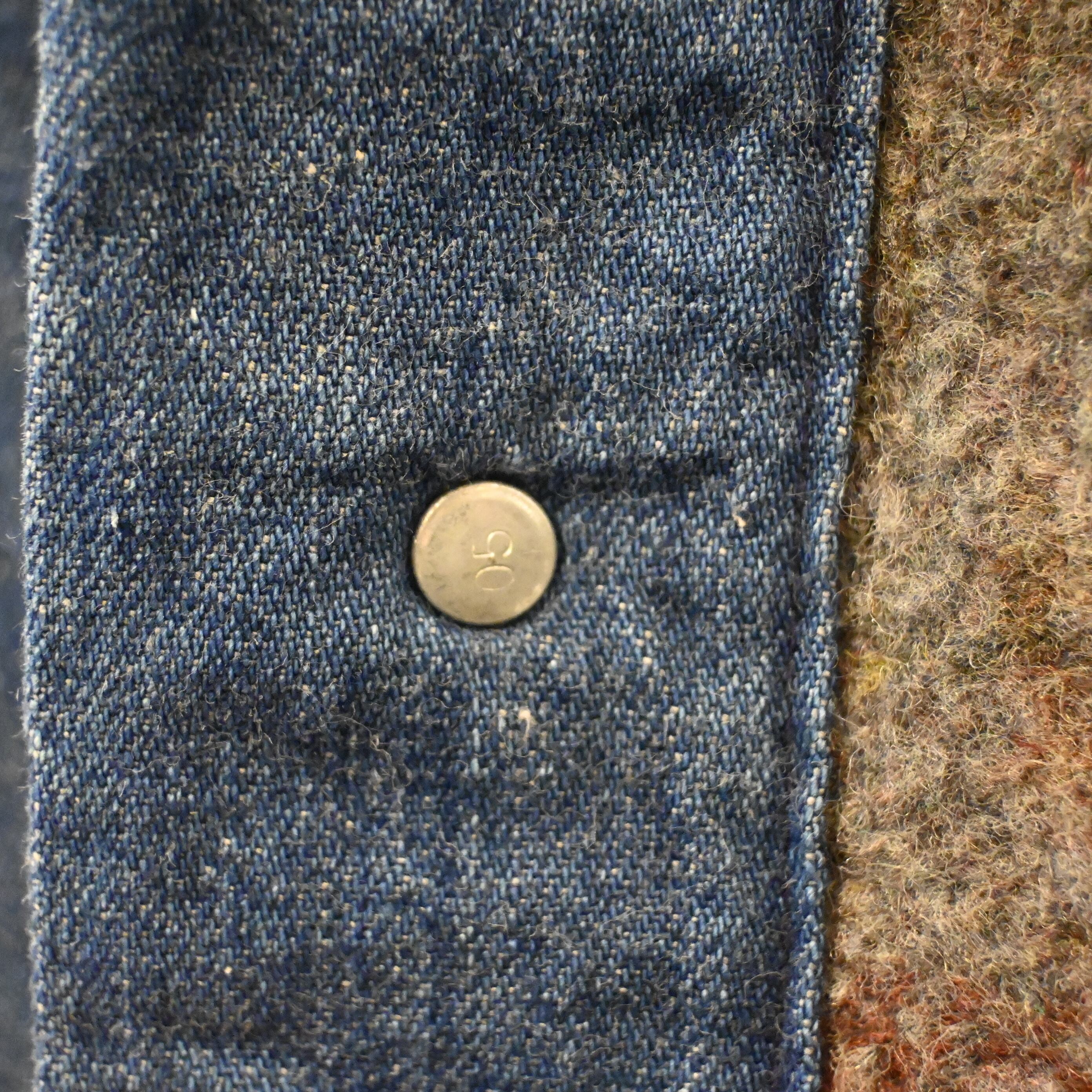 フロントのボタンはブランド刻印入りのメタルボタンを使用。裾やポケットのステッチの経年変化も魅力で、アメカジ・ワークスタイルにぴったりなアイテムです。