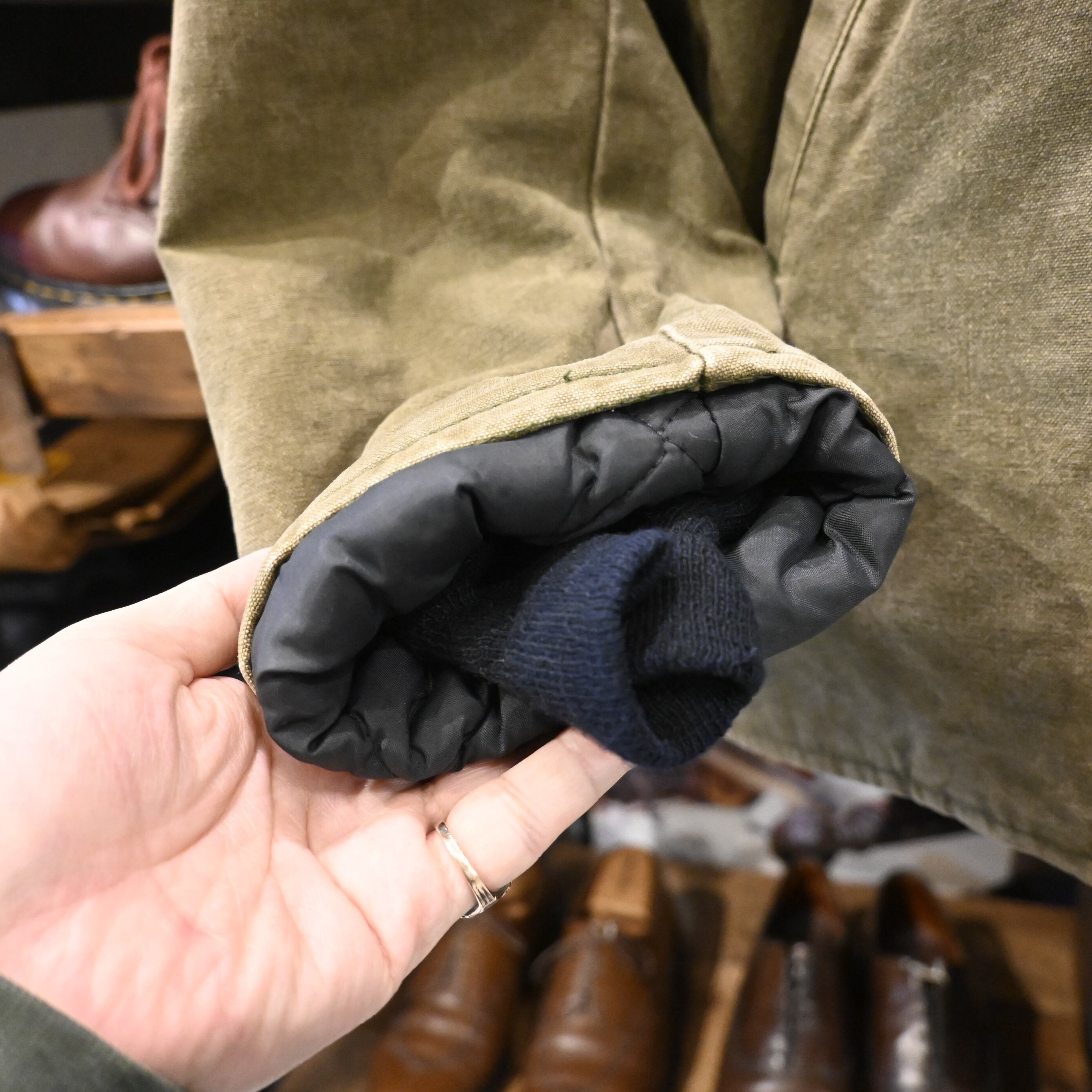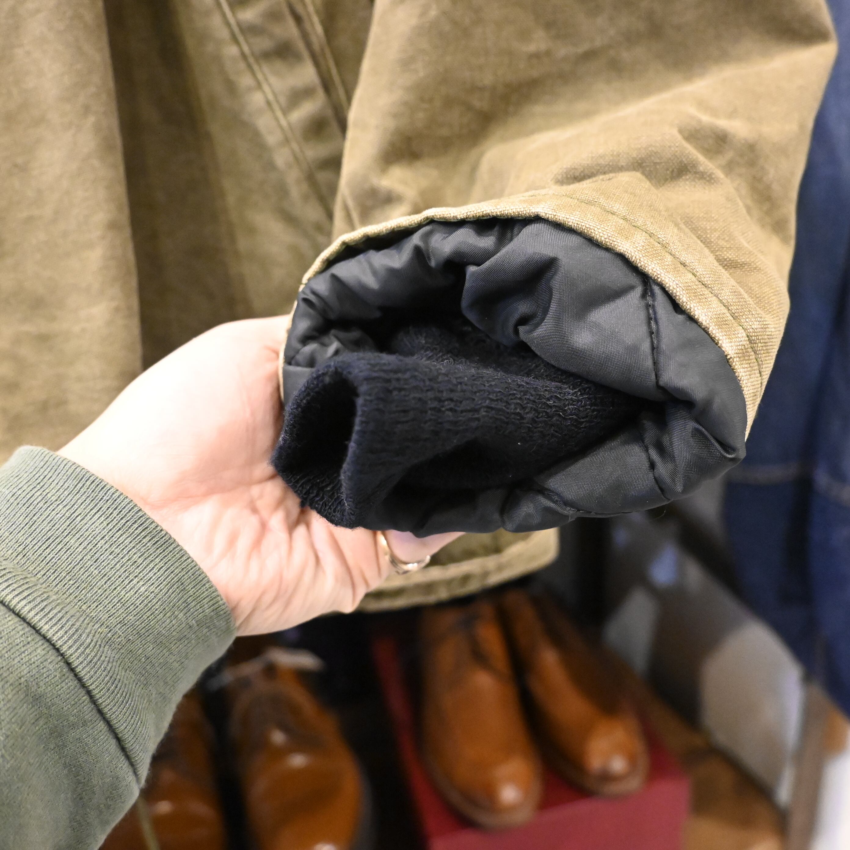 タフなコットンシェルに、グレーの肉厚ボアを組み合わせた非常に保温性の高い一着。袖内部には防風ナイロンとリブインナーが仕込まれ、冷気の侵入を防ぐ構造になっています。