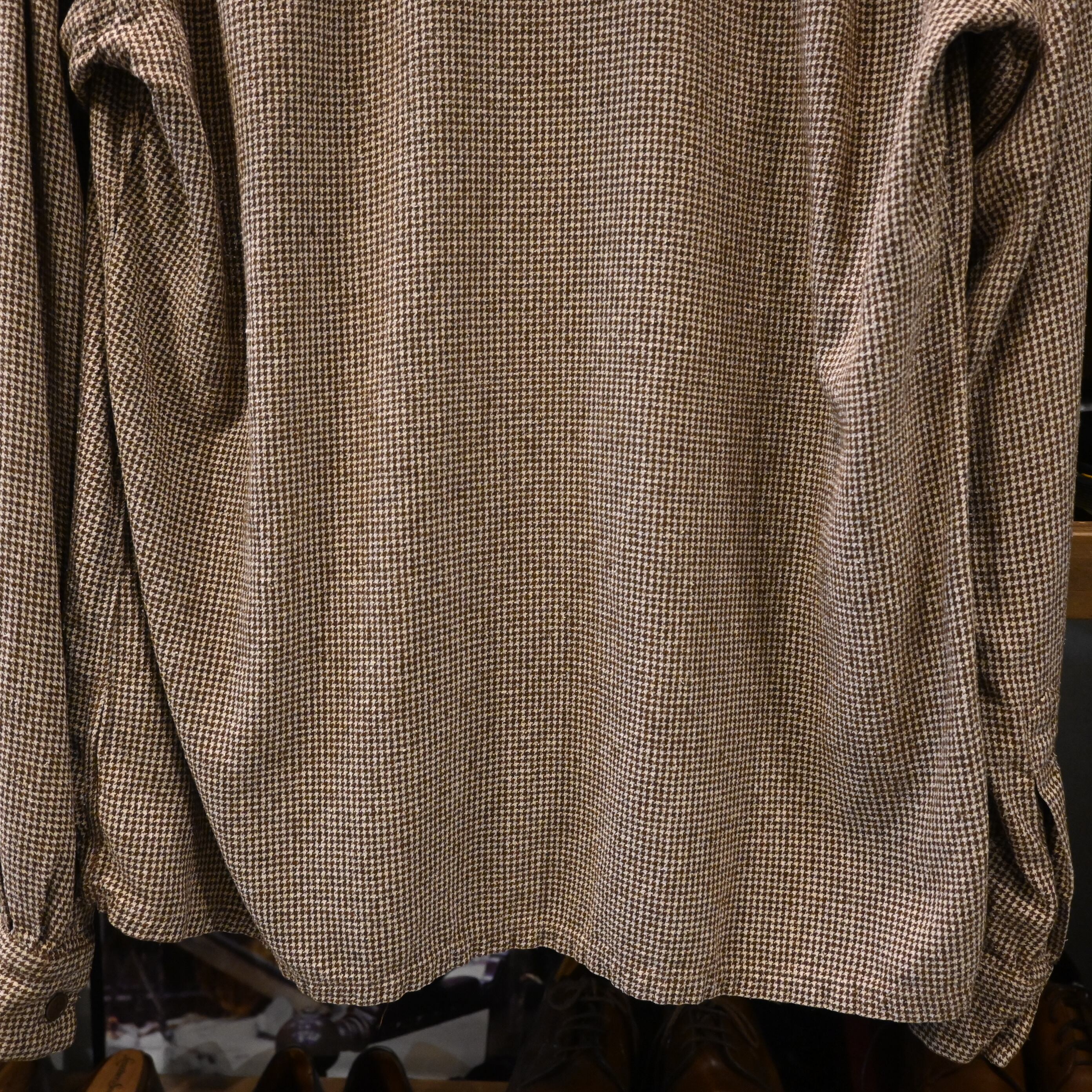 (SEOワード:千鳥格子 シャツ、ヴィンテージ シャツジャケット、70s 80s、ブラウンシャツ、古着、アメカジ、テーラー)