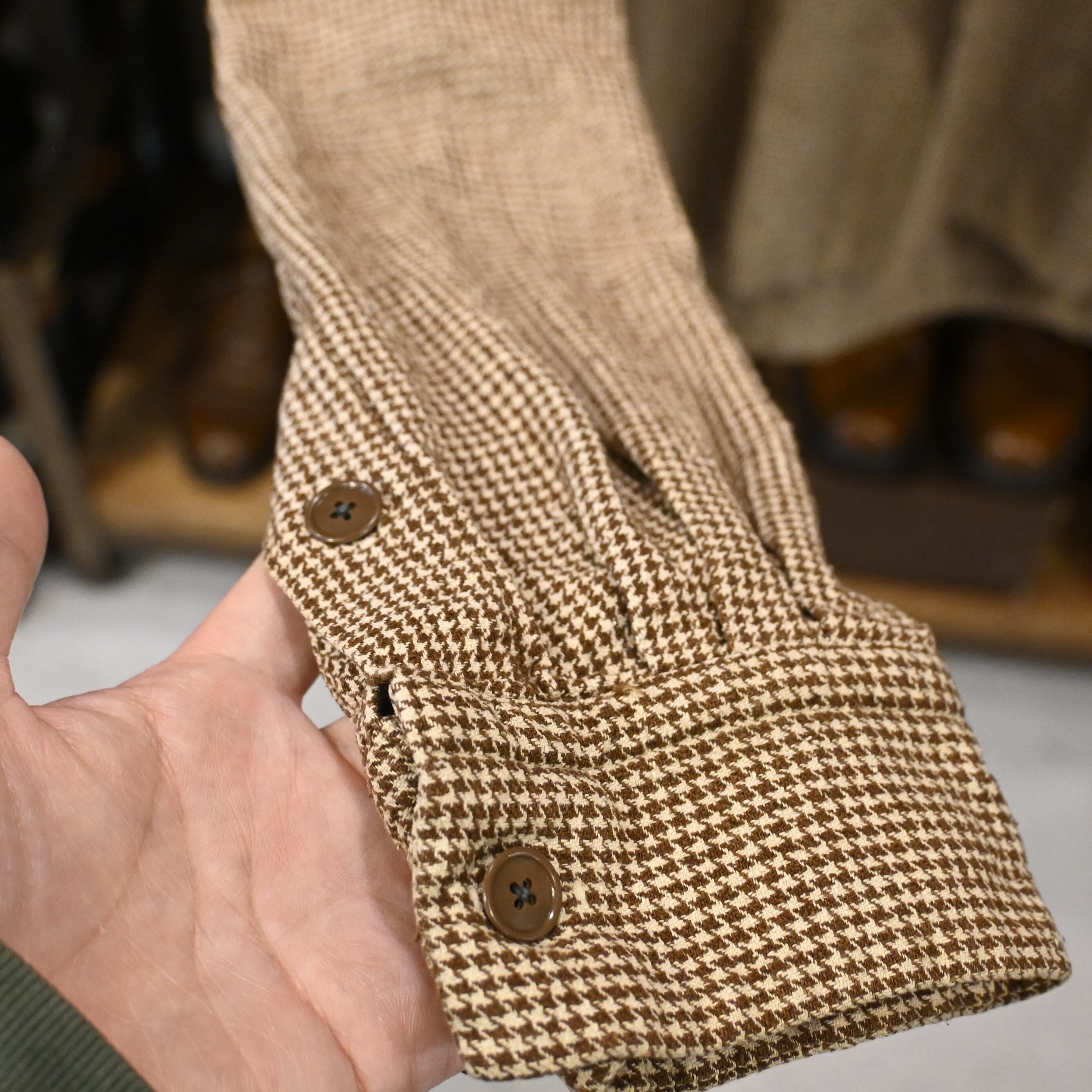 [ about L ] EIJI TAILOR YOKOHAMA Vintage houndstooth open-collar shirt , Brown