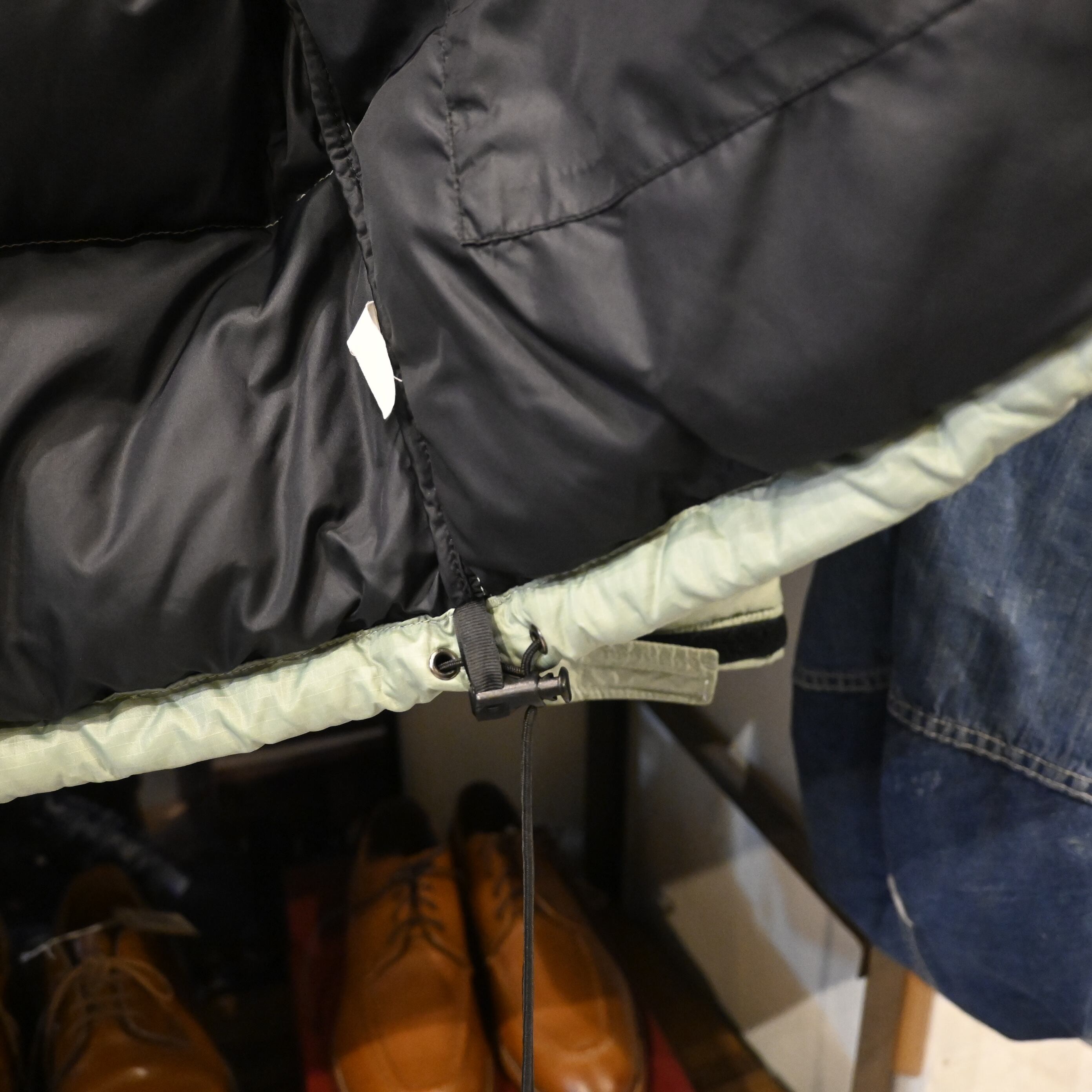 裾にはドローコードを備え、冷気の侵入を防ぎつつシルエット調整も可能。