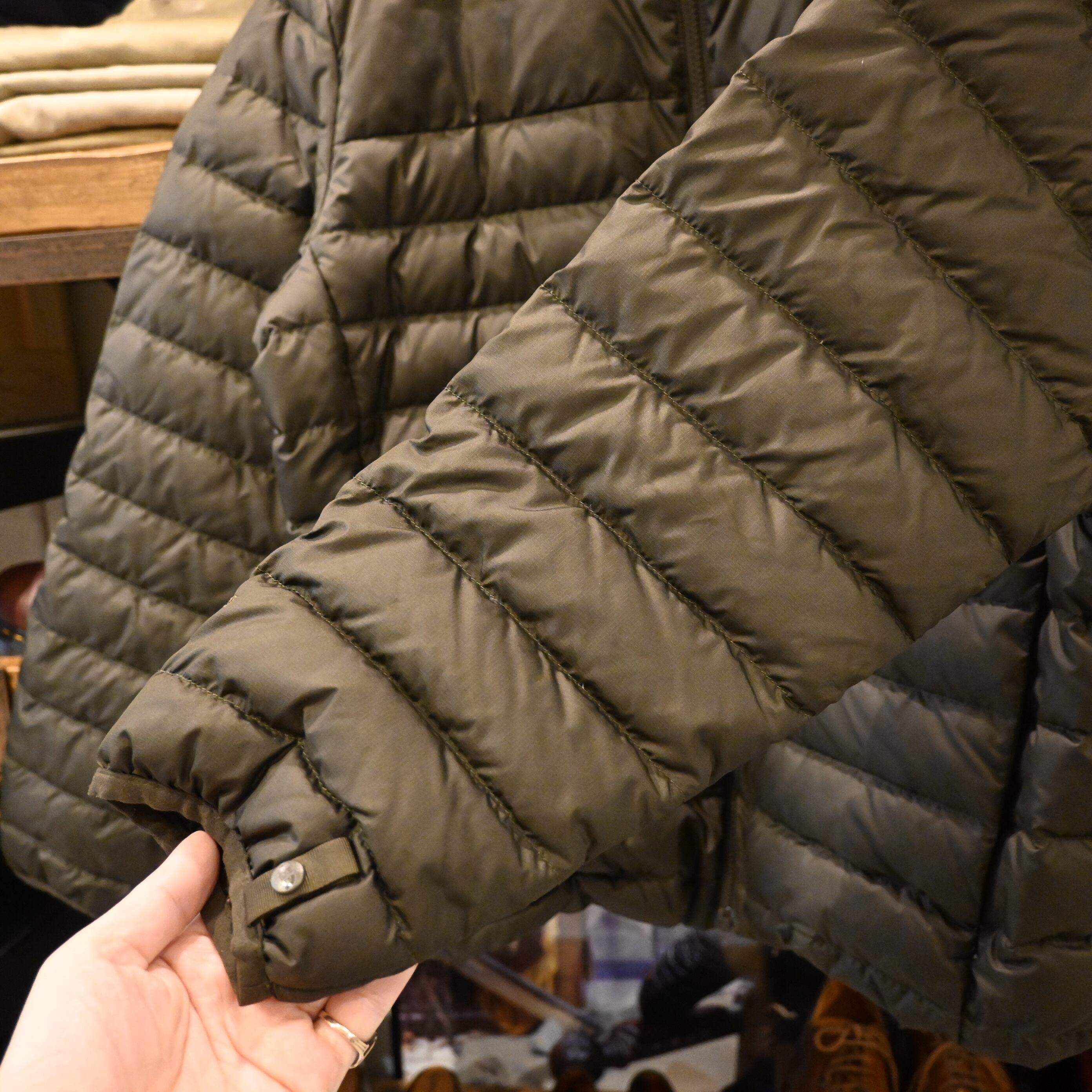 落ち着いたカーキカラーが都会的で、アウトドアからタウンユースまで幅広く使いやすい一着です。インナーにスウェットやニットを合わせるだけで冬の定番コーデが完成します。