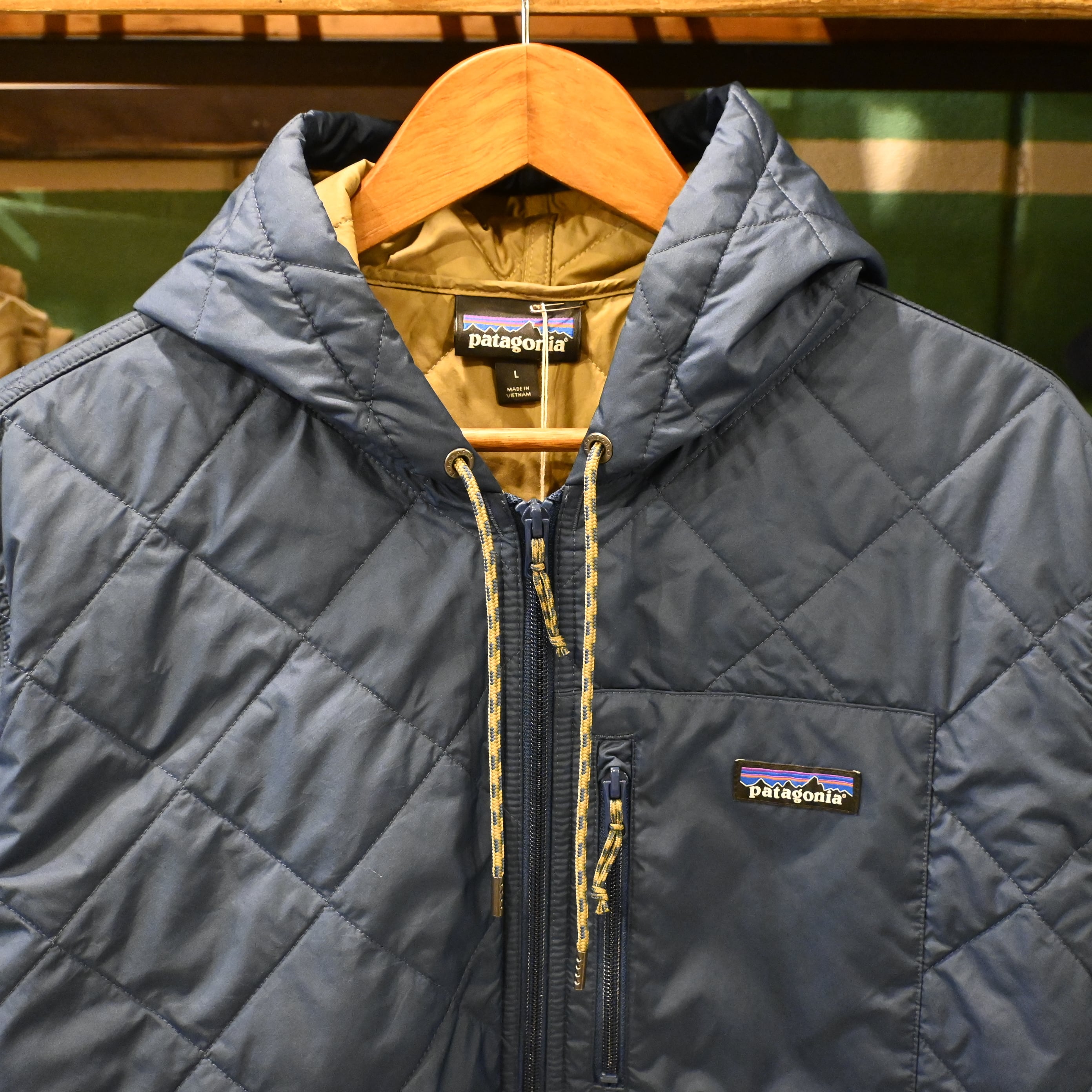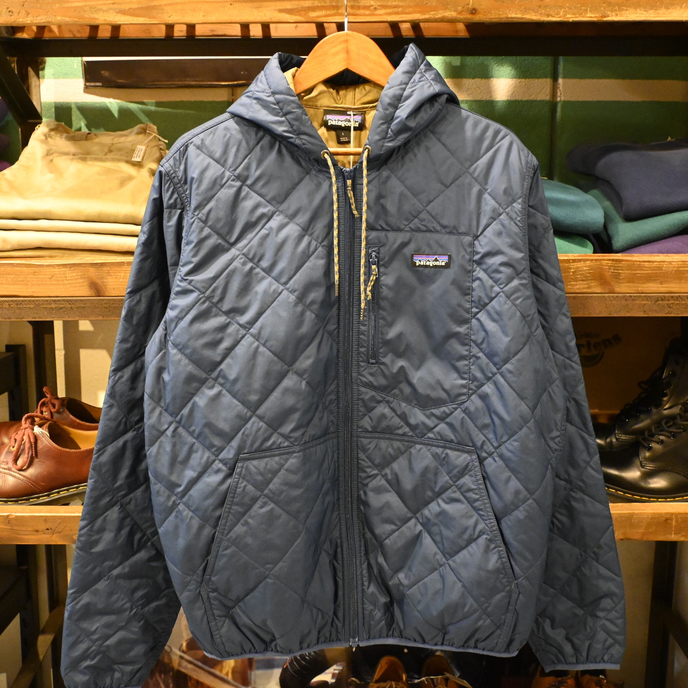[ L ] Patagonia 2021年 Vietnam製 Diamond Quilted Bomber Hoodie , Navy