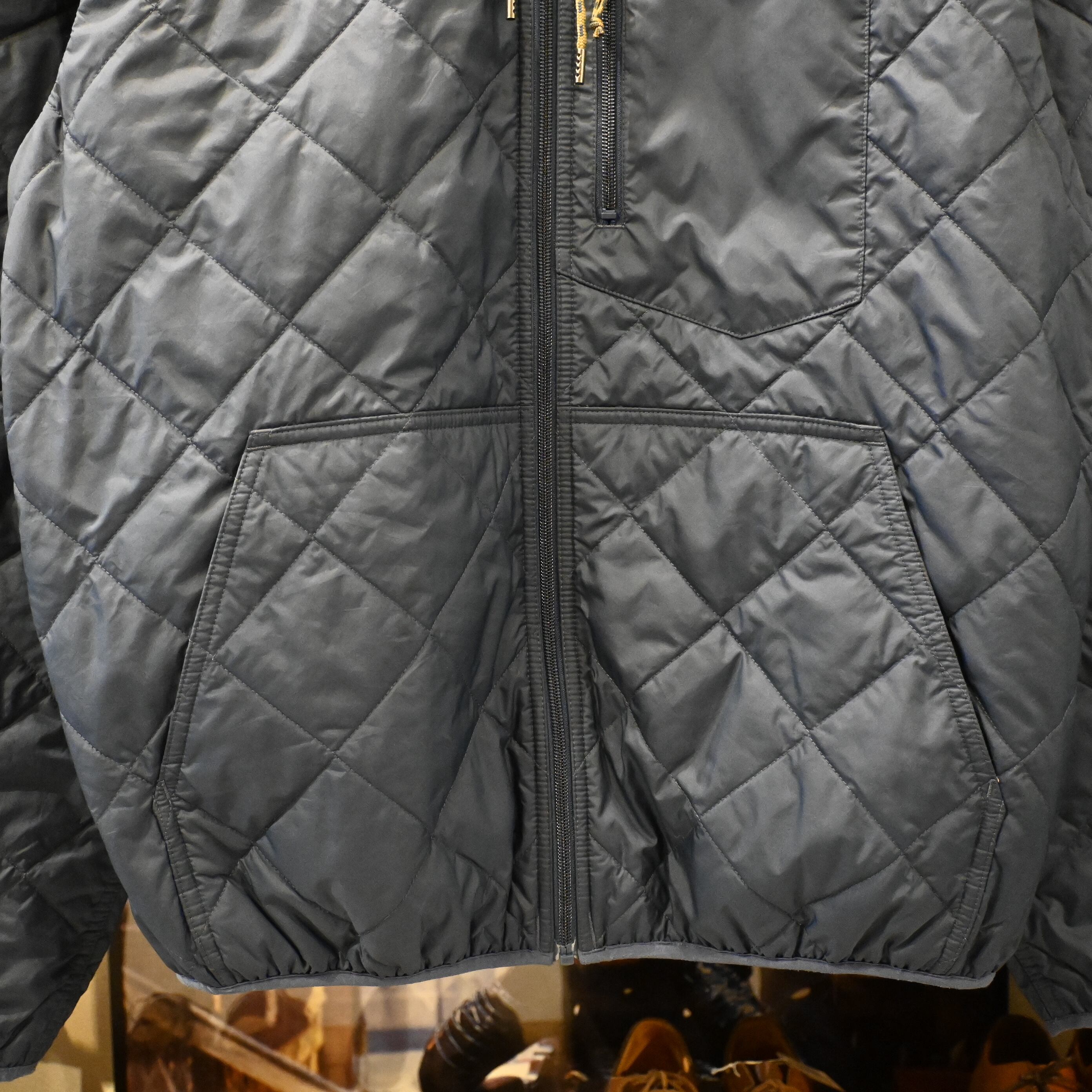 全面に施されたダイヤモンドキルトは軽さと保温性を両立し、街着にもアウトドアにも使いやすい万能デザインです。