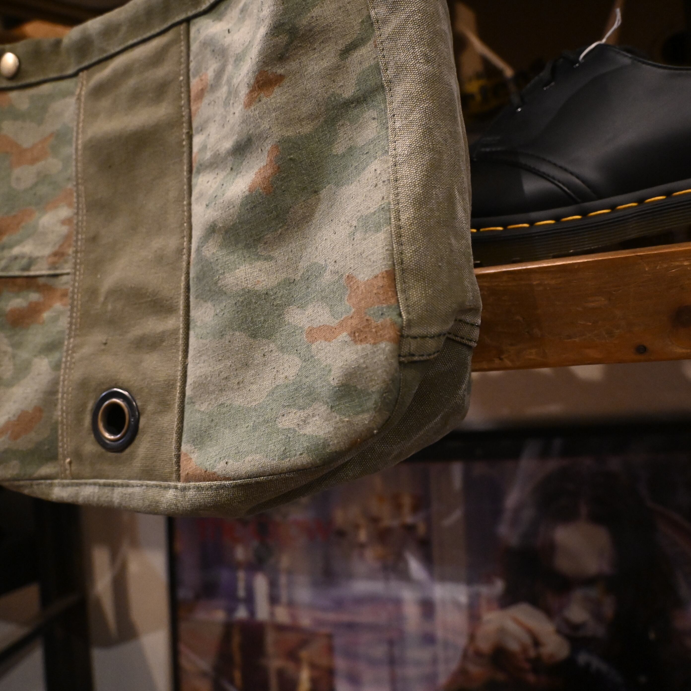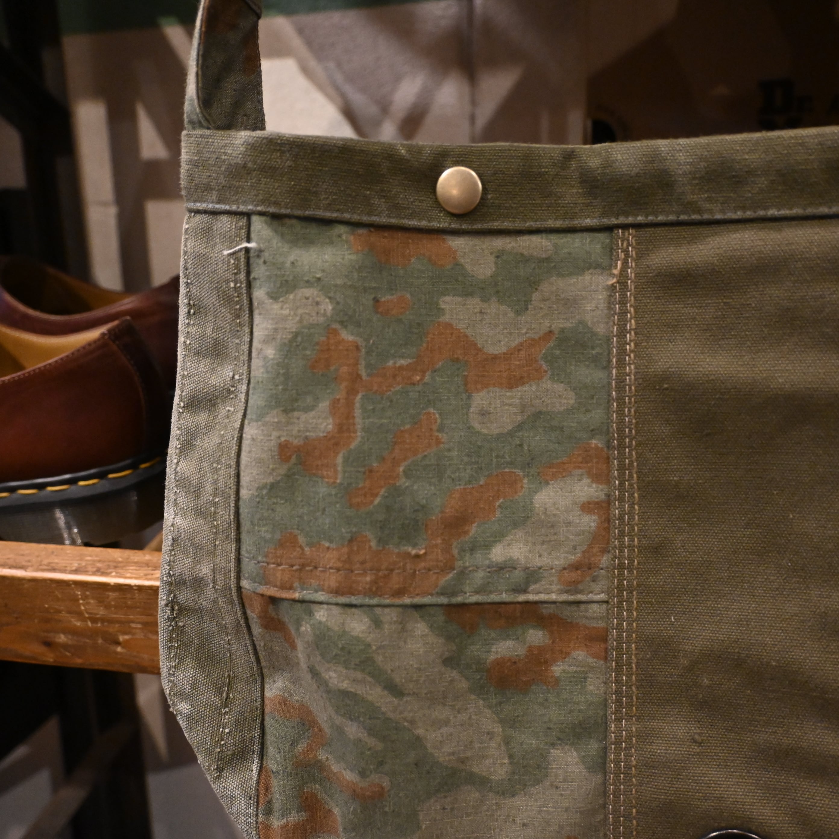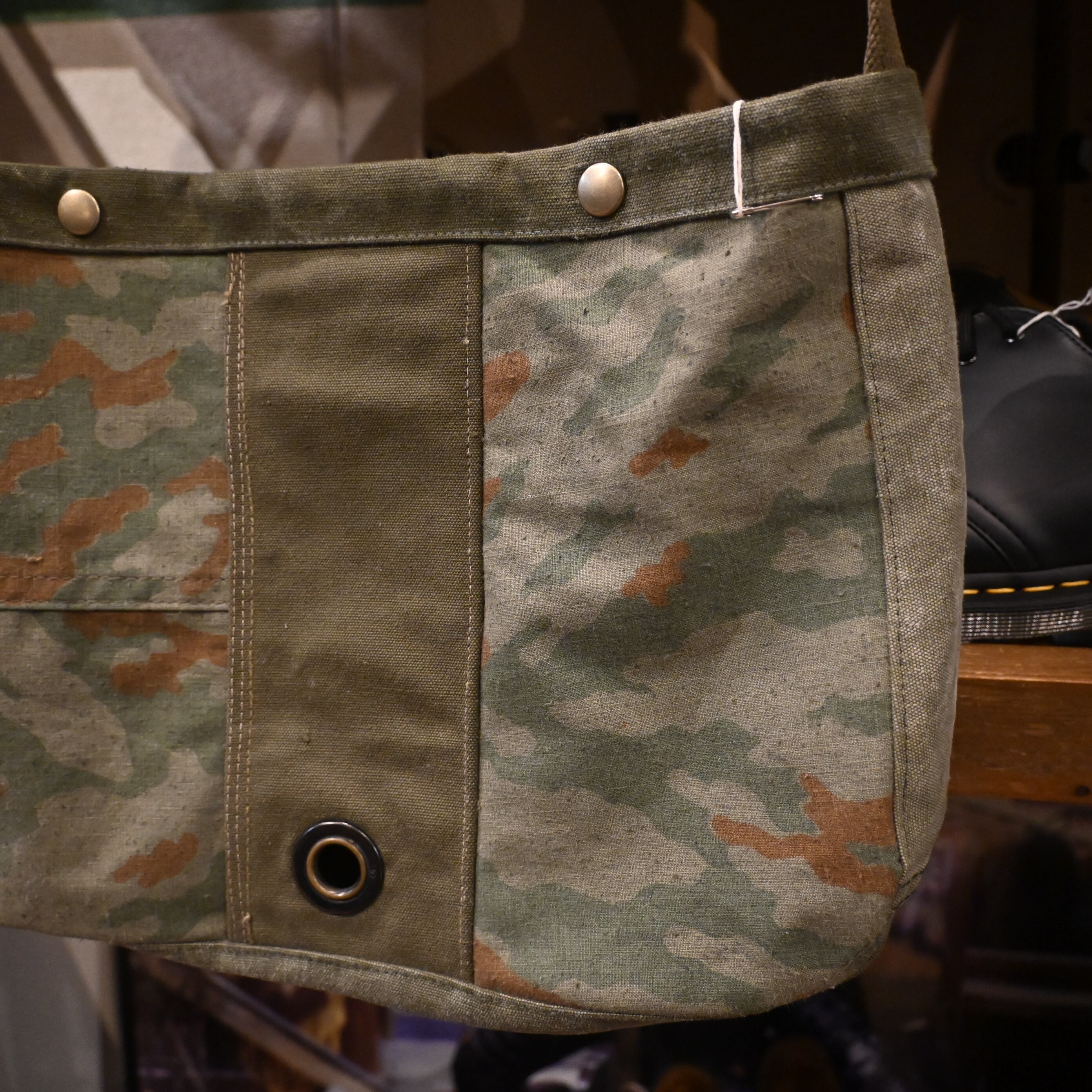 ミリタリーピースならではの古いキャンバスの風合いを楽しめる一点物です。