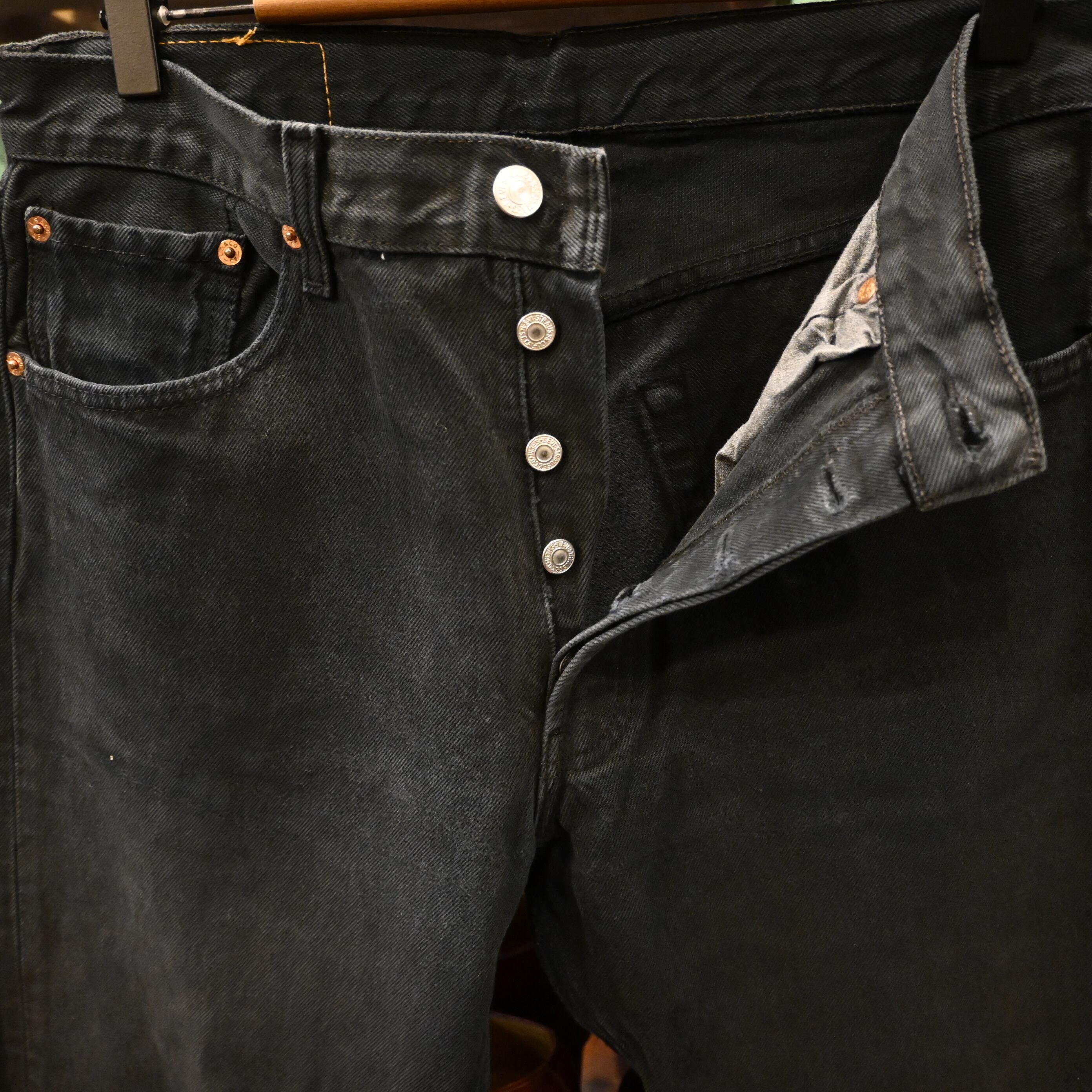 ブラックデニム特有のフェード感も魅力で、色落ちの表情や生地の硬さがヴィンテージらしさをしっかり残しています。