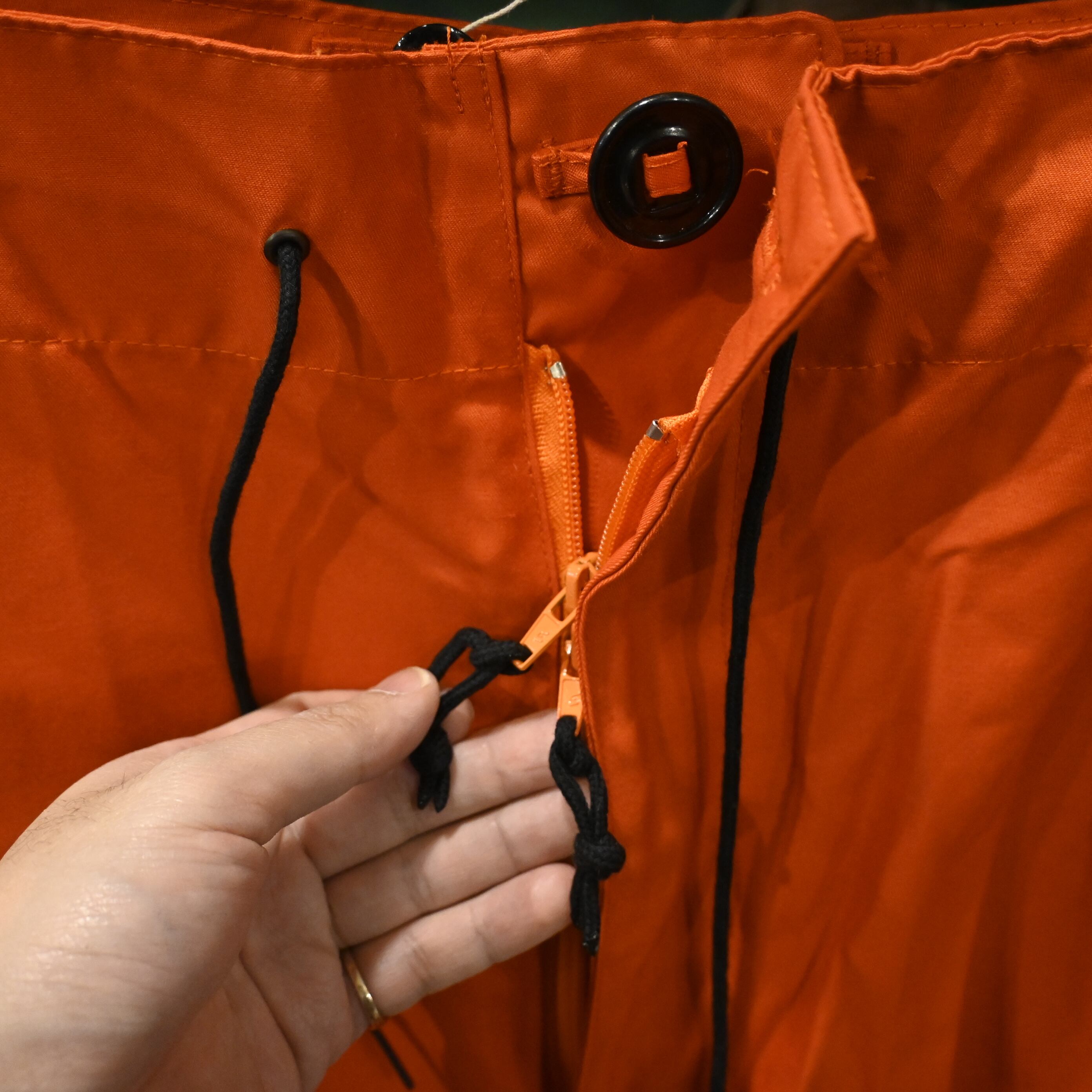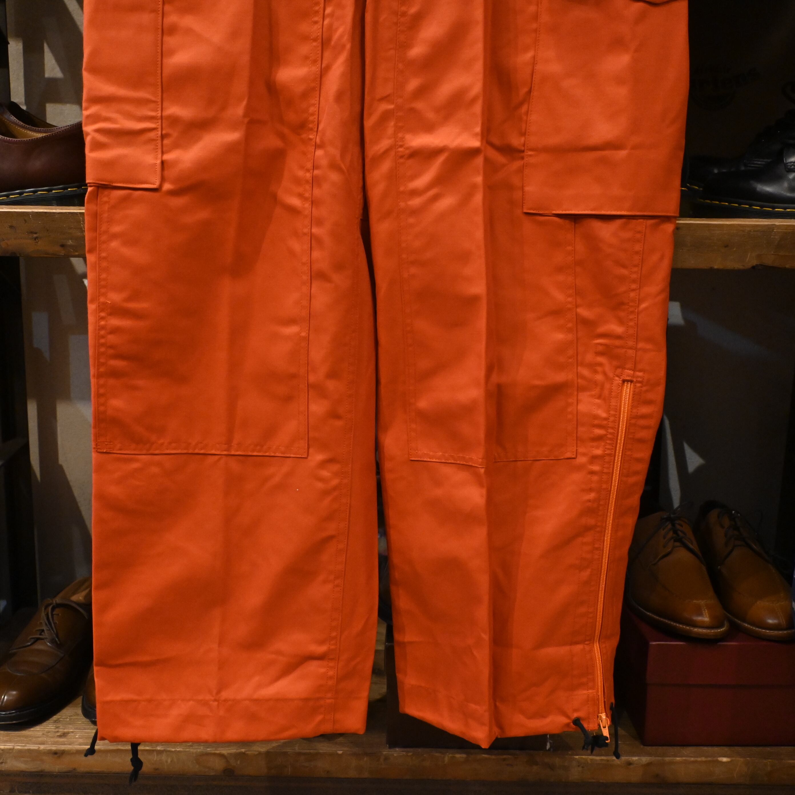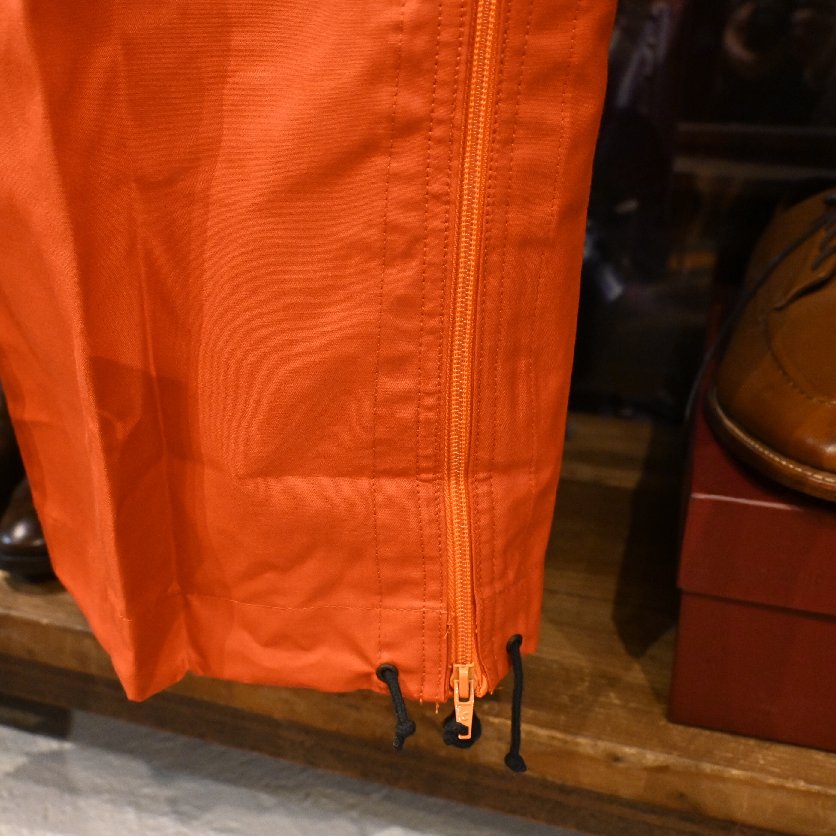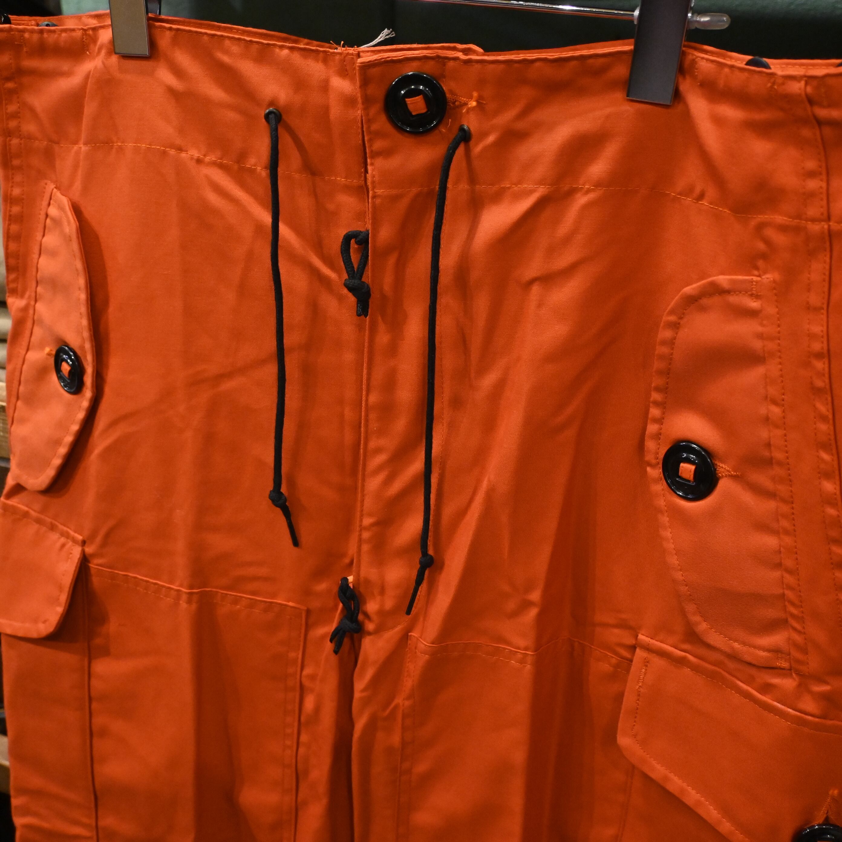 ウエストはジップ+コードの二重構造、裾はジッパー&ドローコードで調整可能。カーゴポケットやスナップボタンもカナダ軍らしさが光るディテールです。