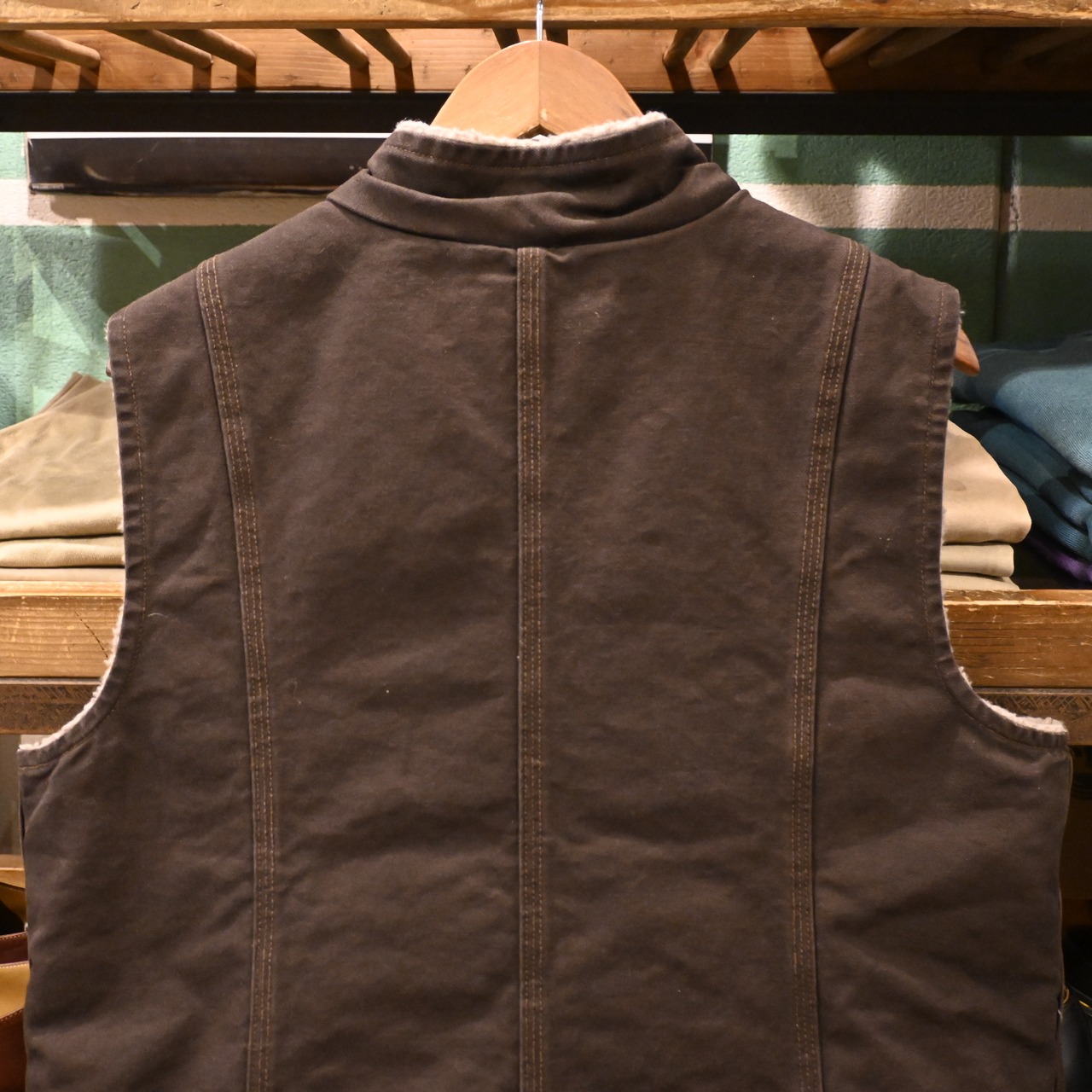 ブラウンダックのタフな生地に、裏地はシェルパボア仕様で暖かさと軽さを兼ね備えています。