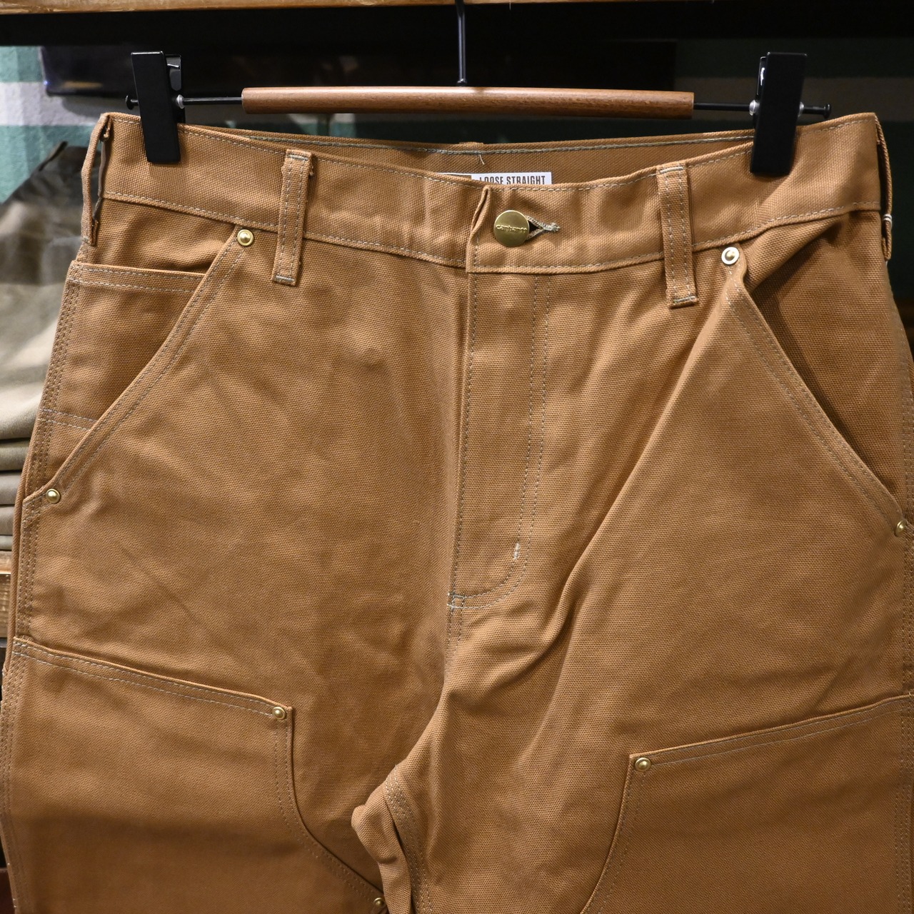丈夫な12ozファームダック生地を使用した、ルーズストレートのダブルフロント仕様。