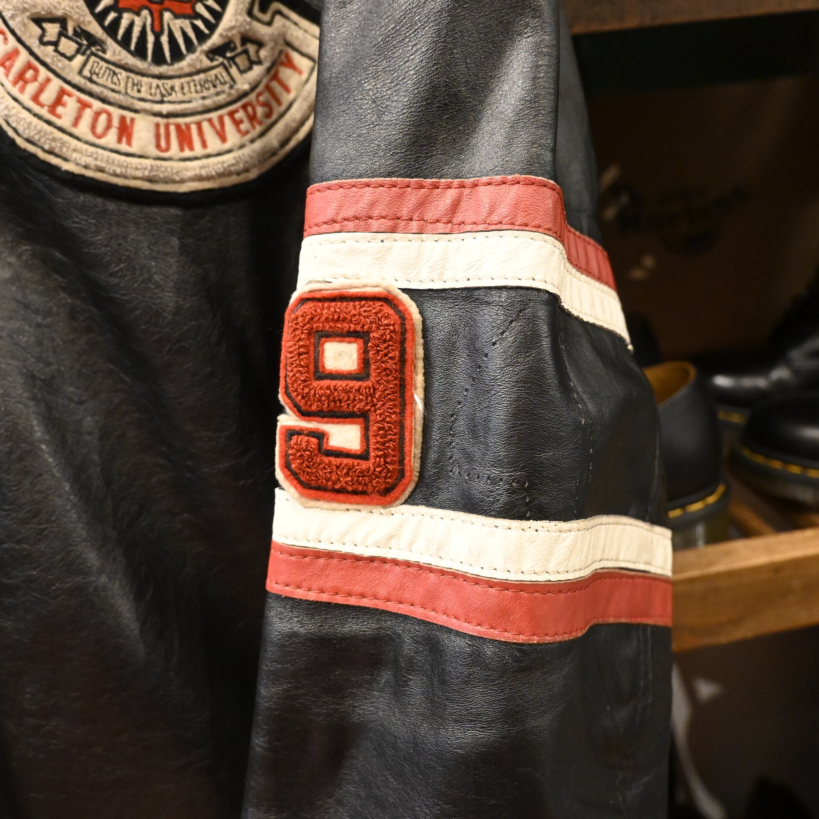 [ 46 ] AVON SPORTS WEAR 90‘s Canada製 "CARLETON UNIVERSITY" Leather Varsity Jacket