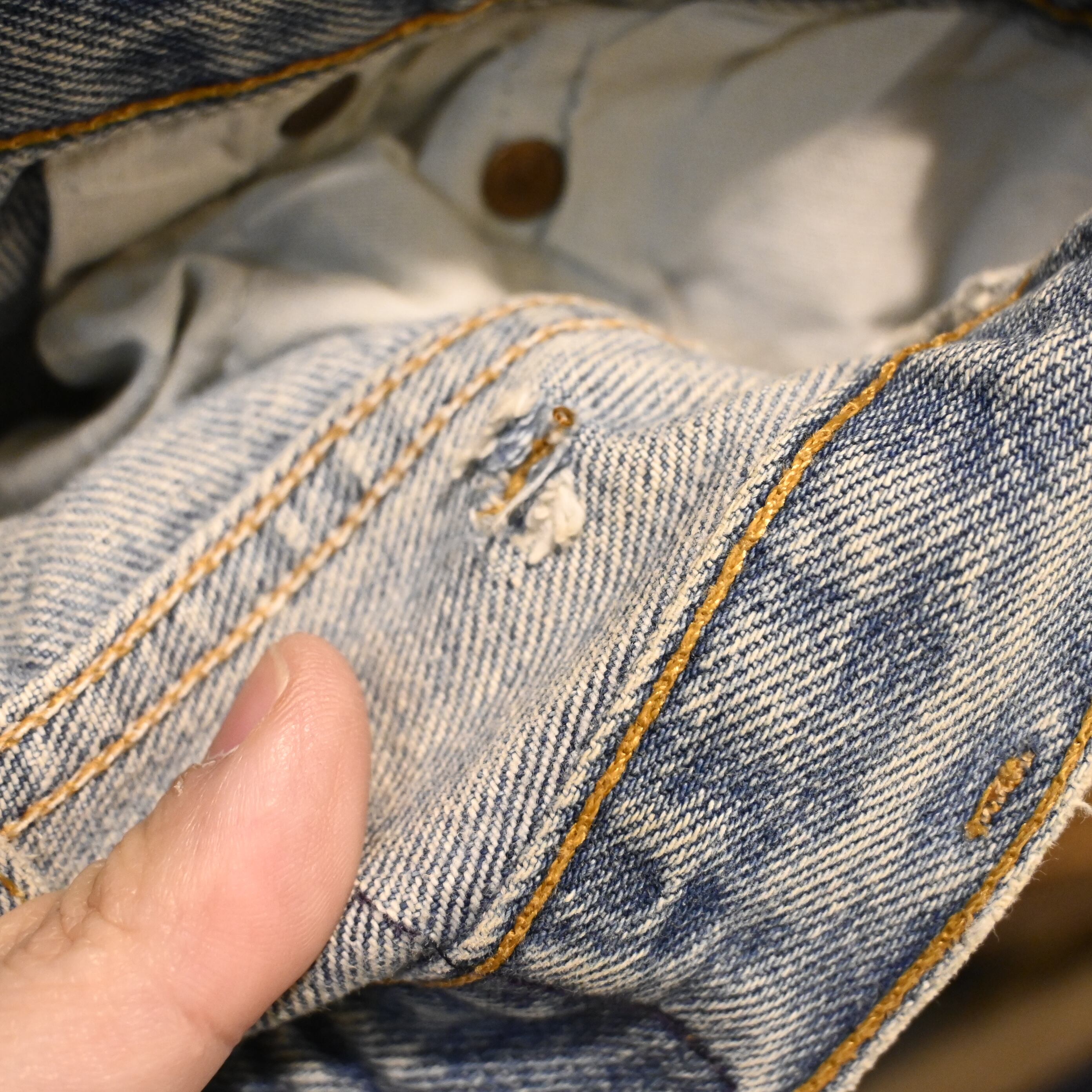 など、履き込まれた一本ならではのリアルなエイジングがあります。