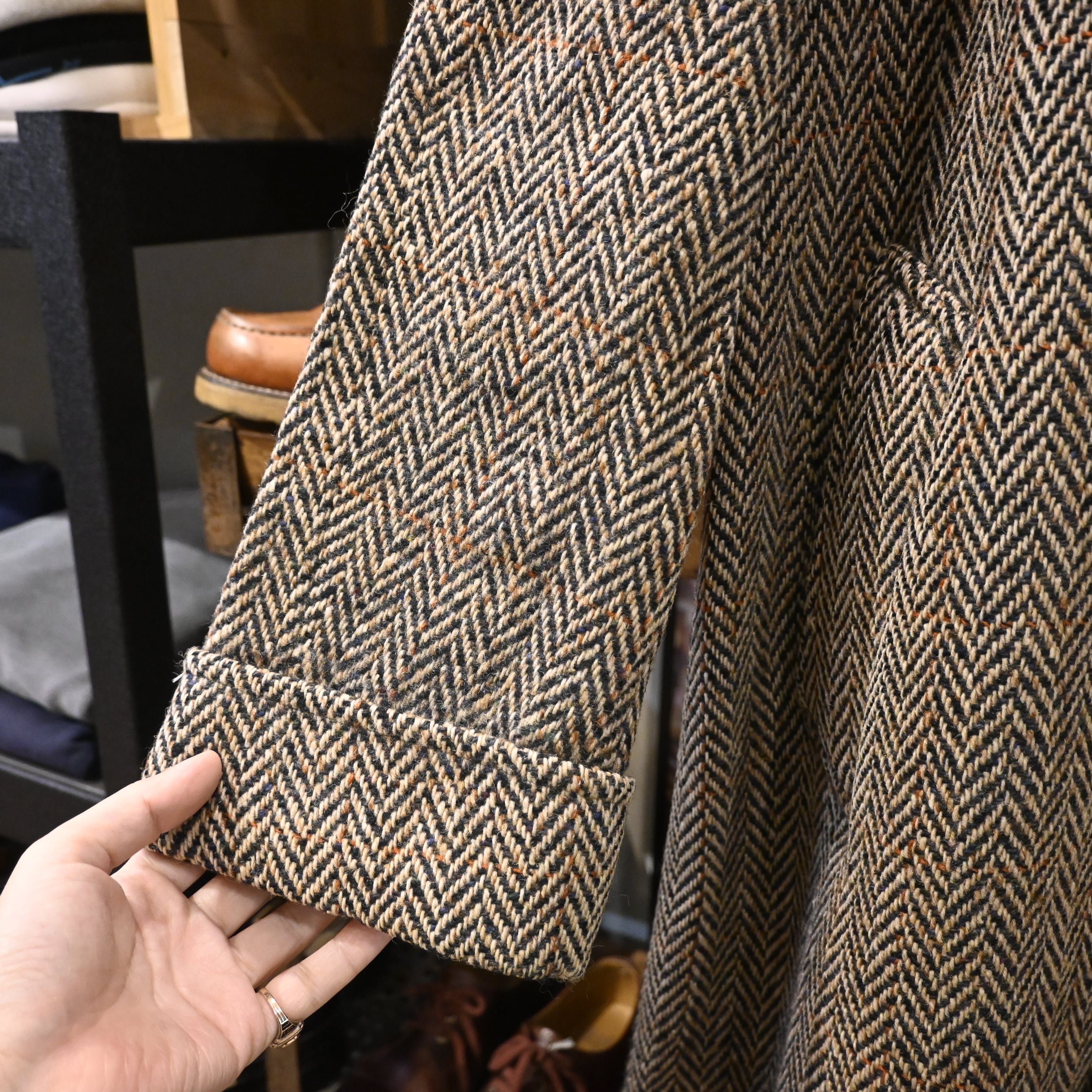 [ 42 ] Aquascutum of London 70‐80‘s Canada製 Herringbone Tweed Raglan Coat , Brown