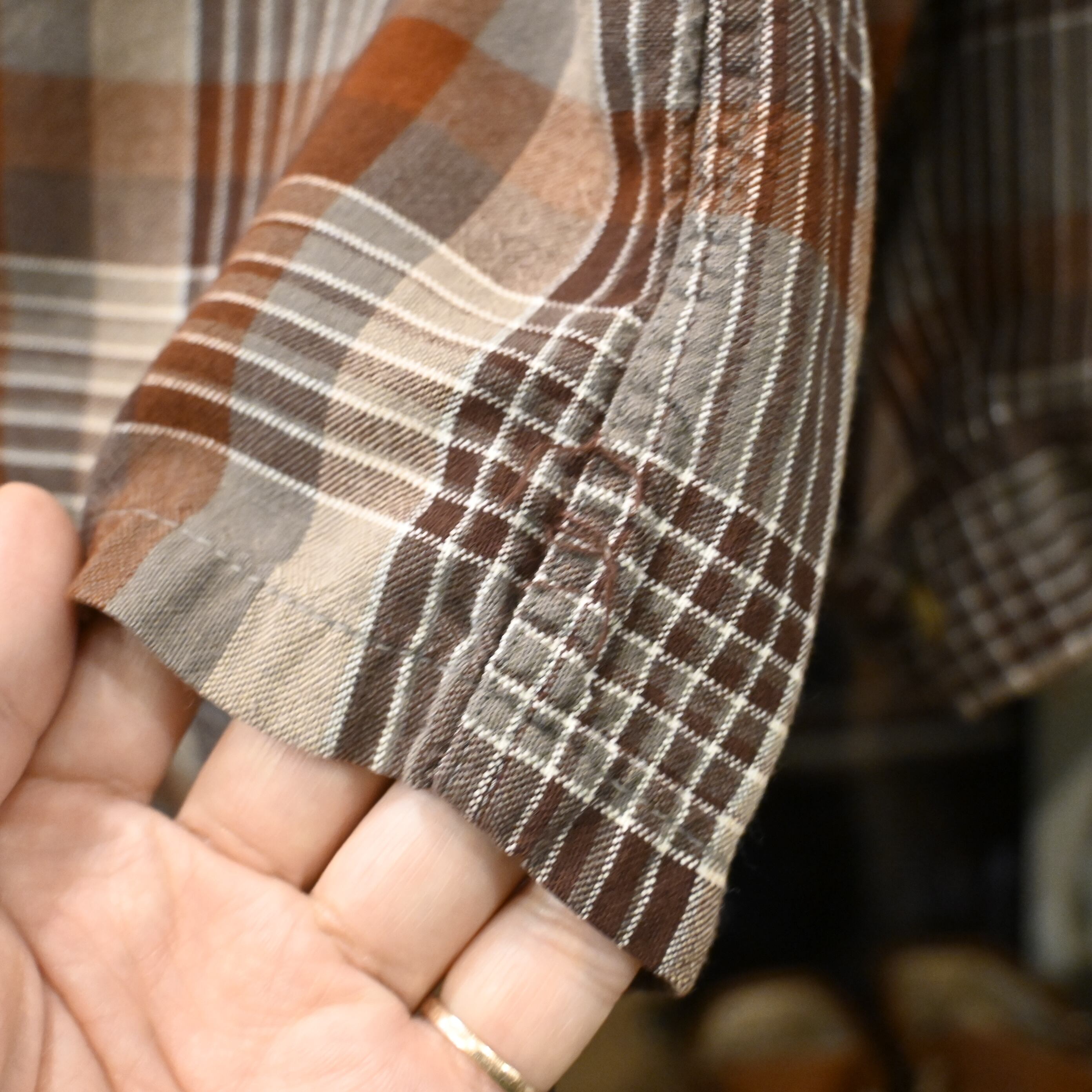 Nelson-Paige 50-60’s USA製 オープンカラー レーヨン混 チェックシャツ ブラウン