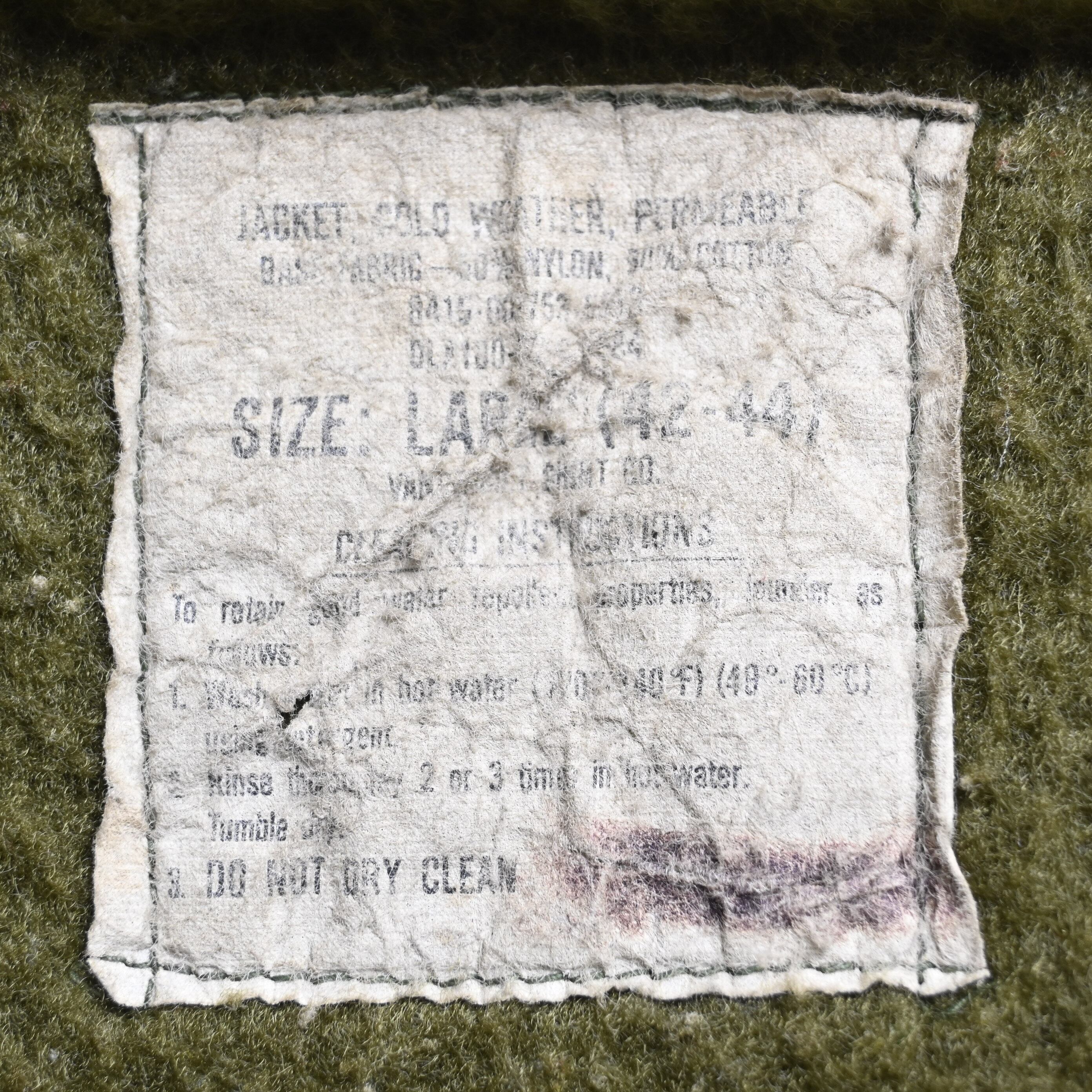 内側はオリーブカラーのパイルライナー仕様で、当時の艦上作業や寒冷地での使用を想定した作り。