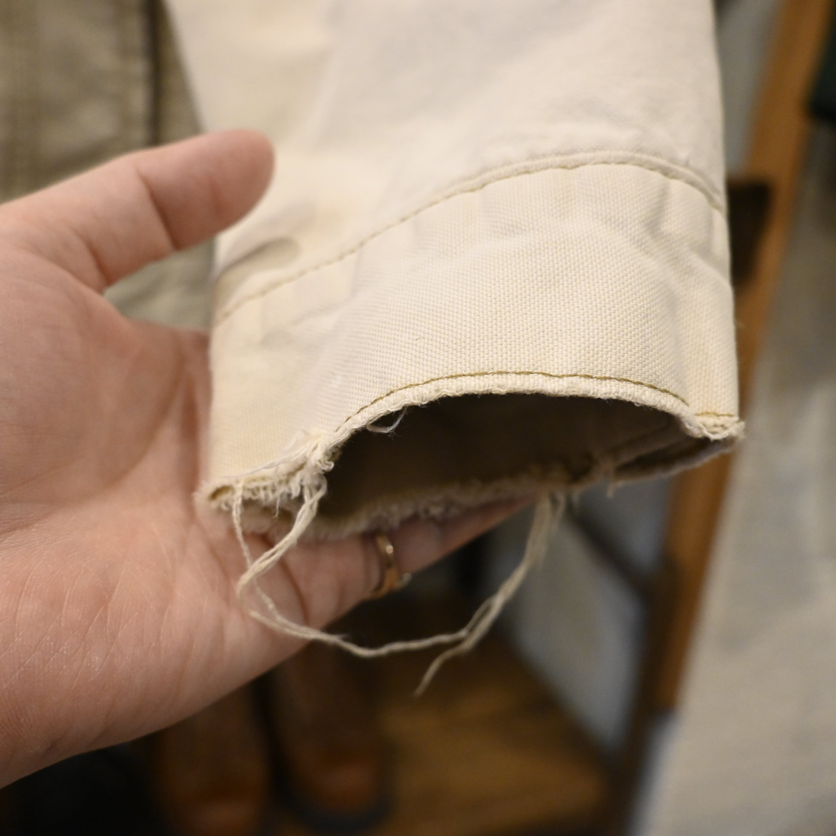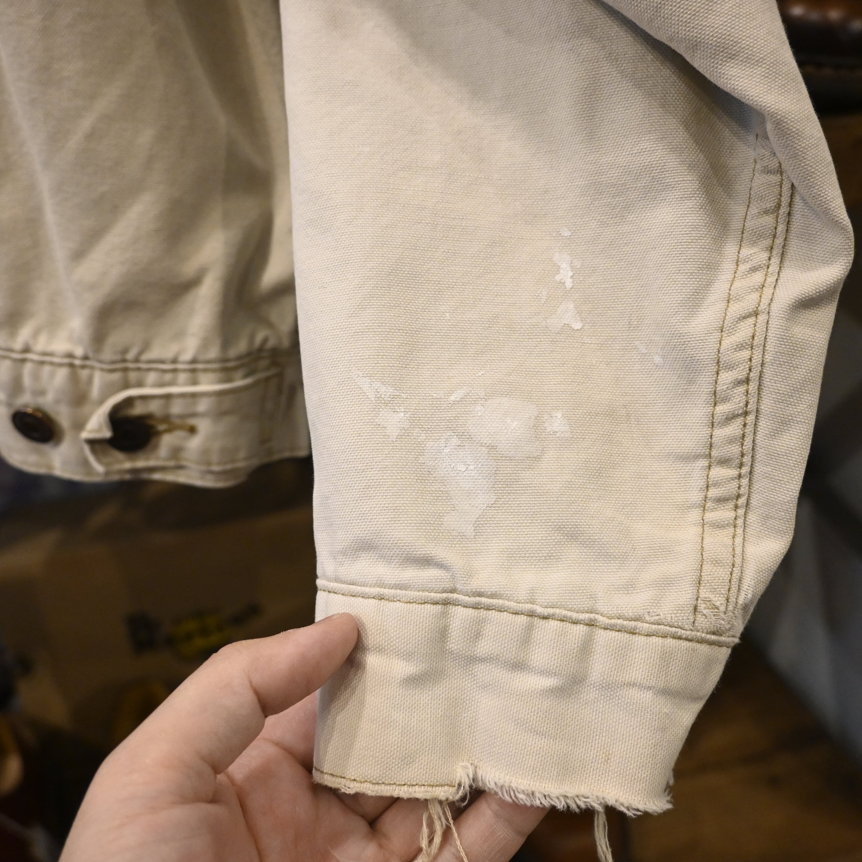 袖にうっすらとしたペンキ散り。袖口に擦れ・ほつれ・ダメージあり。