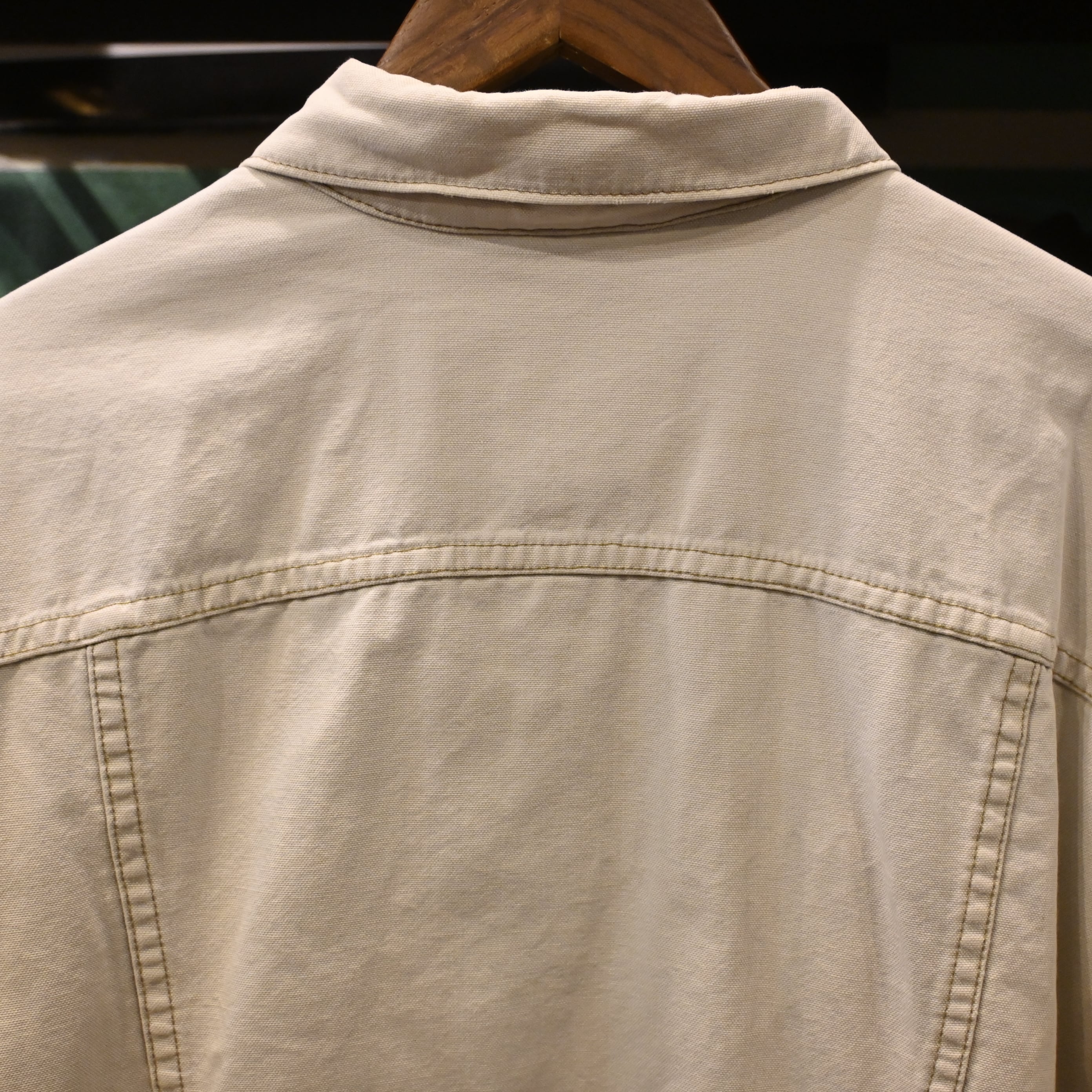 70518は定番70505系の流れを汲むモデルで、デニムとは異なるコットンキャンバス素材に、裏地には保温性のあるブランケットライナーを備えた秋冬仕様の一着です。