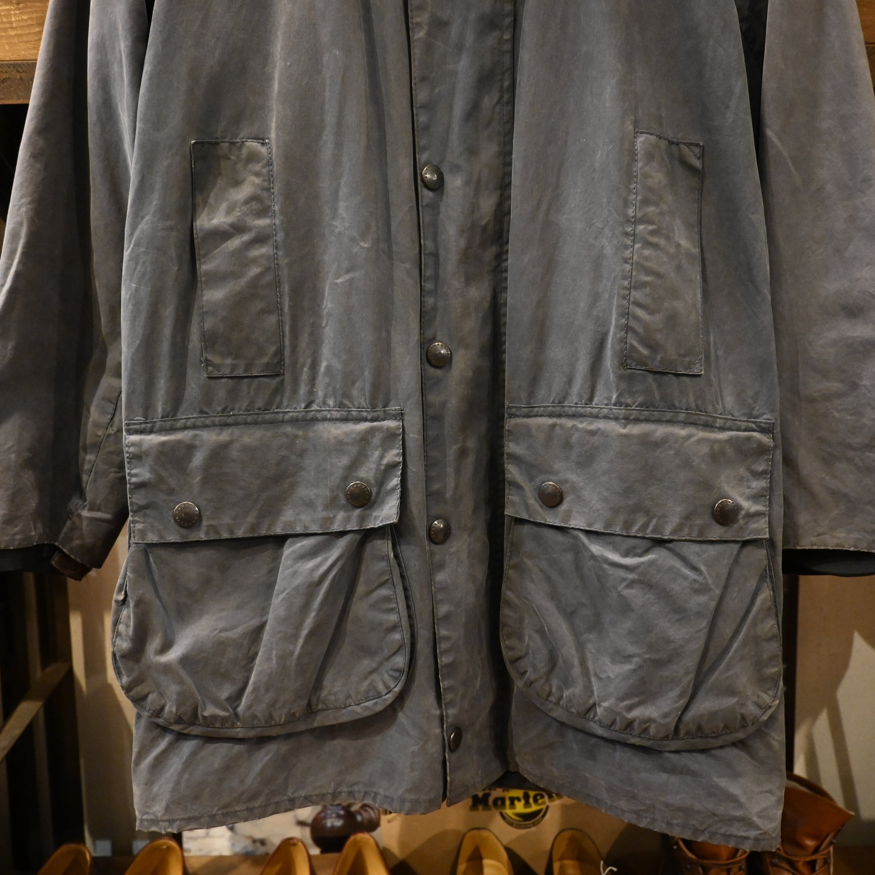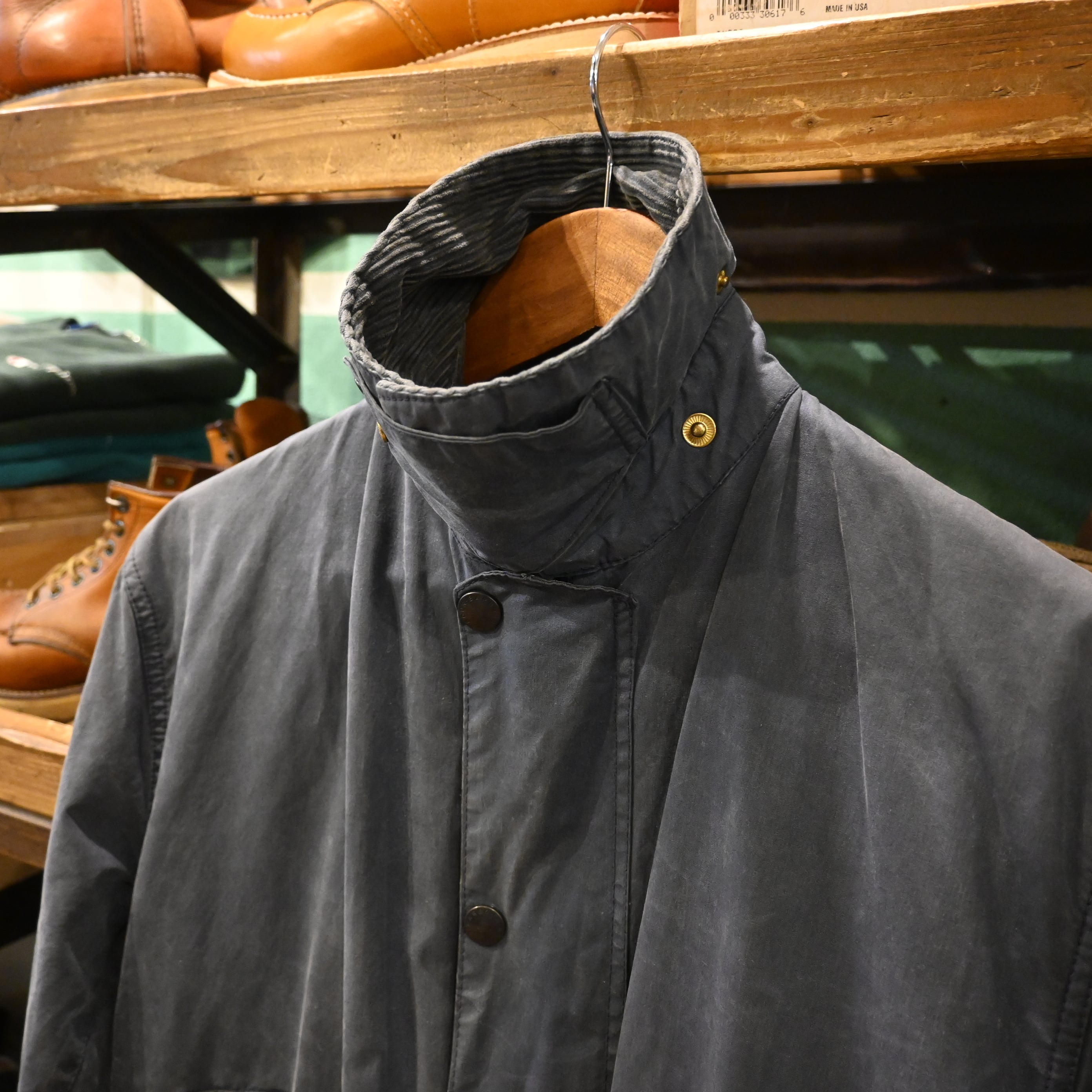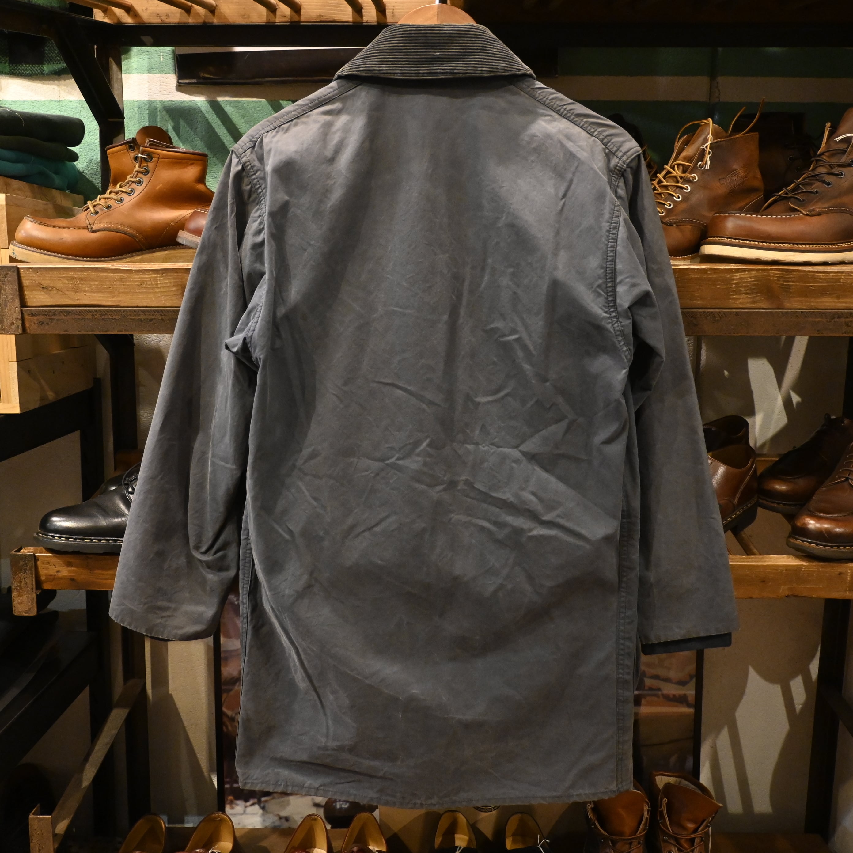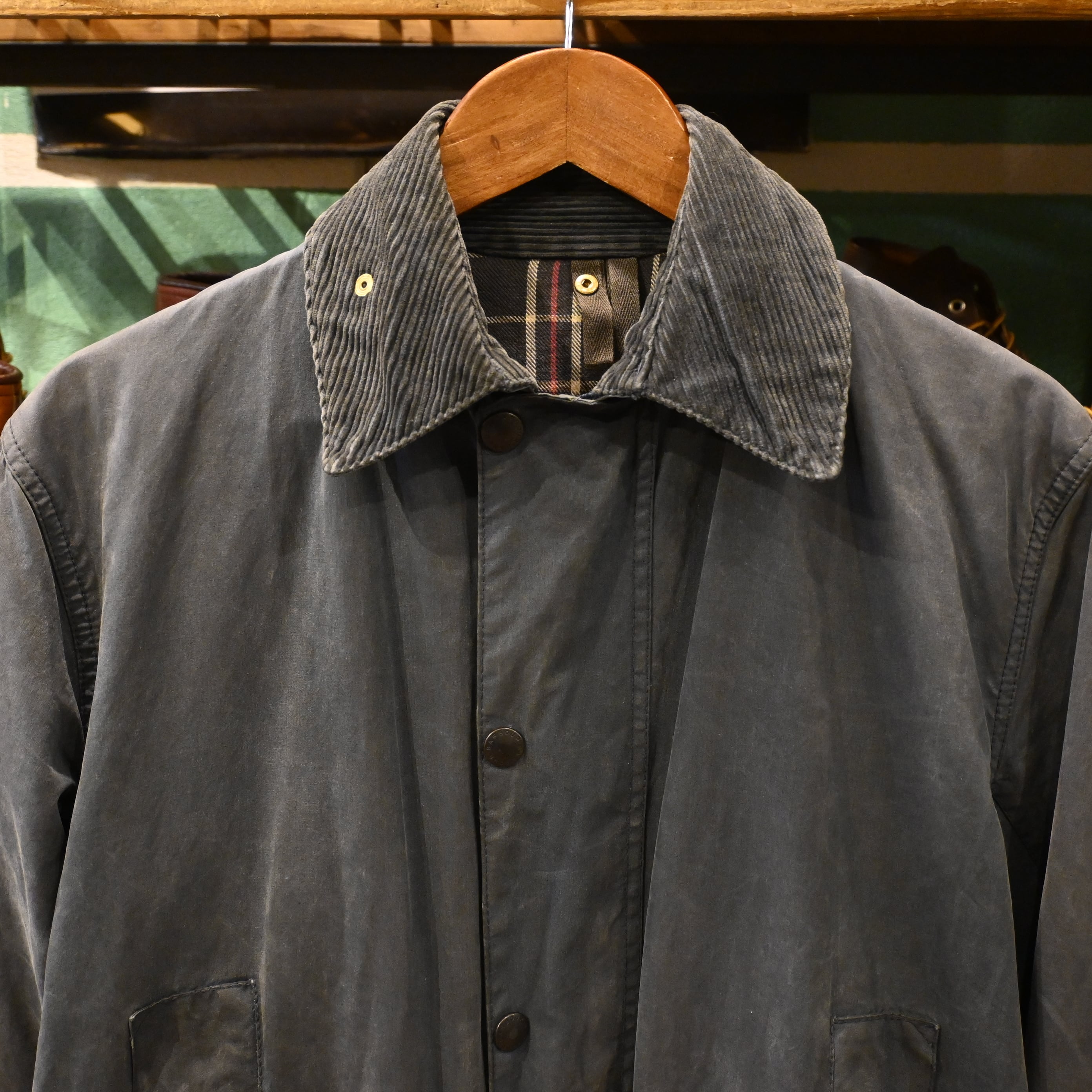 経年によるオイルの抜け感やフェードが見られ、マットで雰囲気のある表情に仕上がっており、ヴィンテージBarbourならではの風合いを楽しんでいただけます。