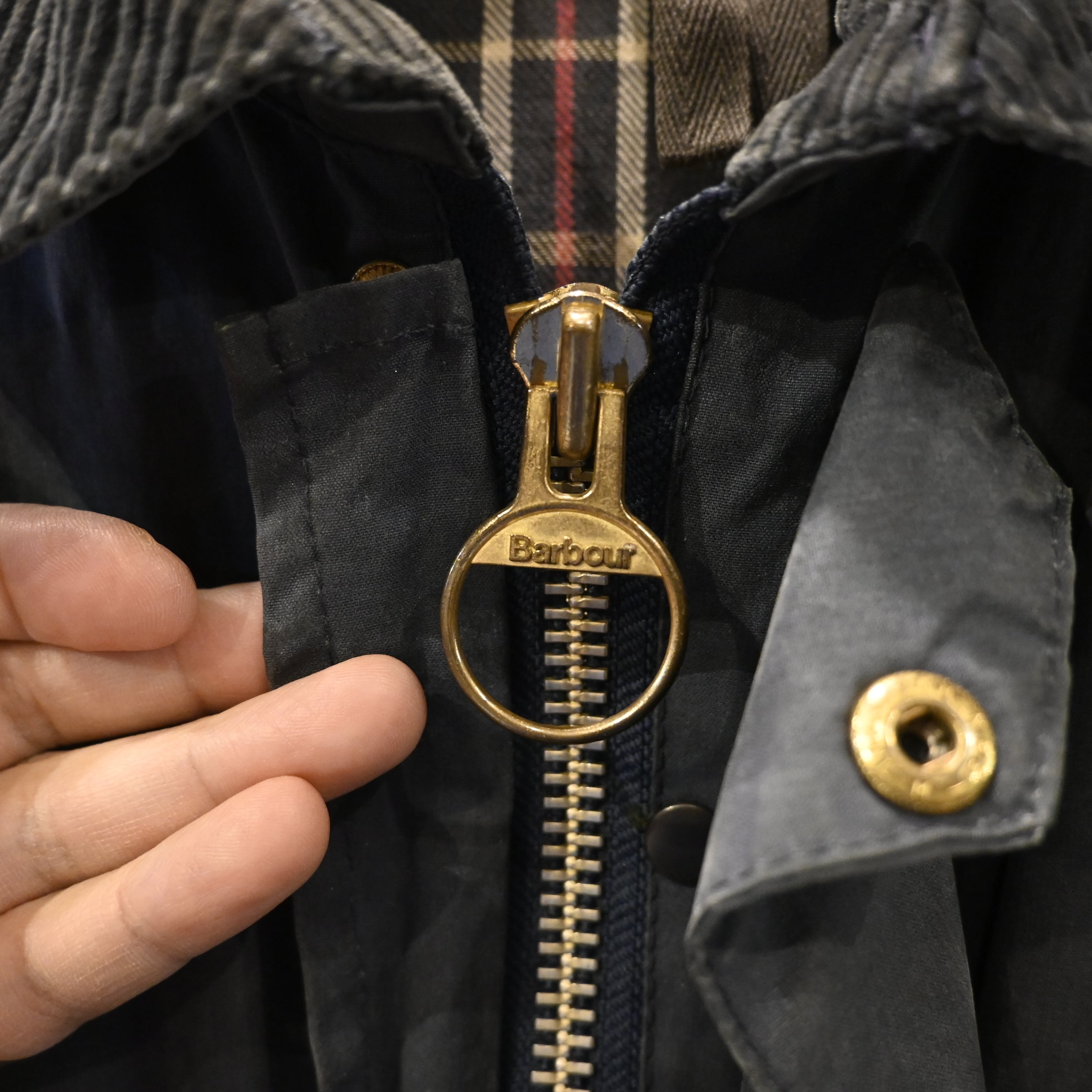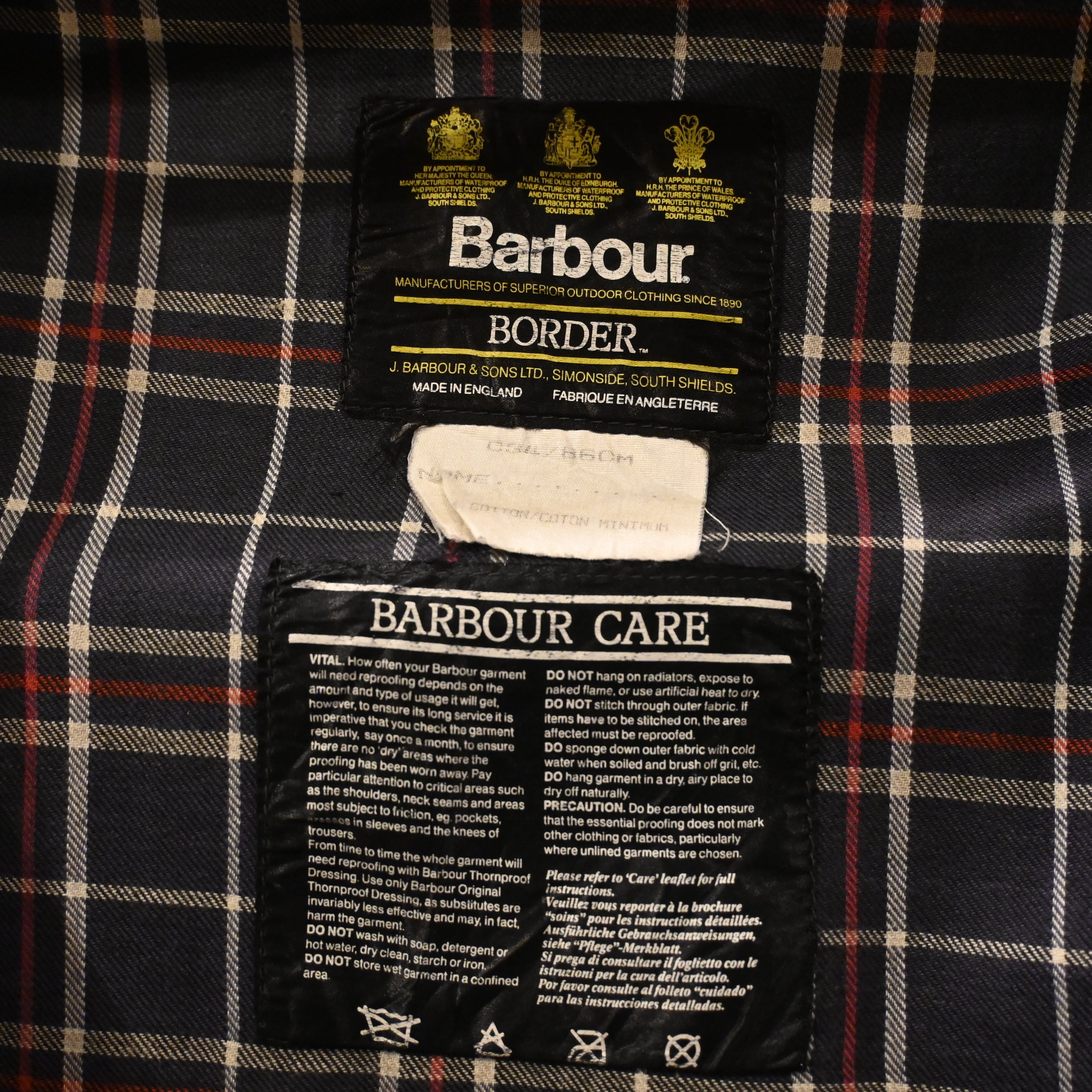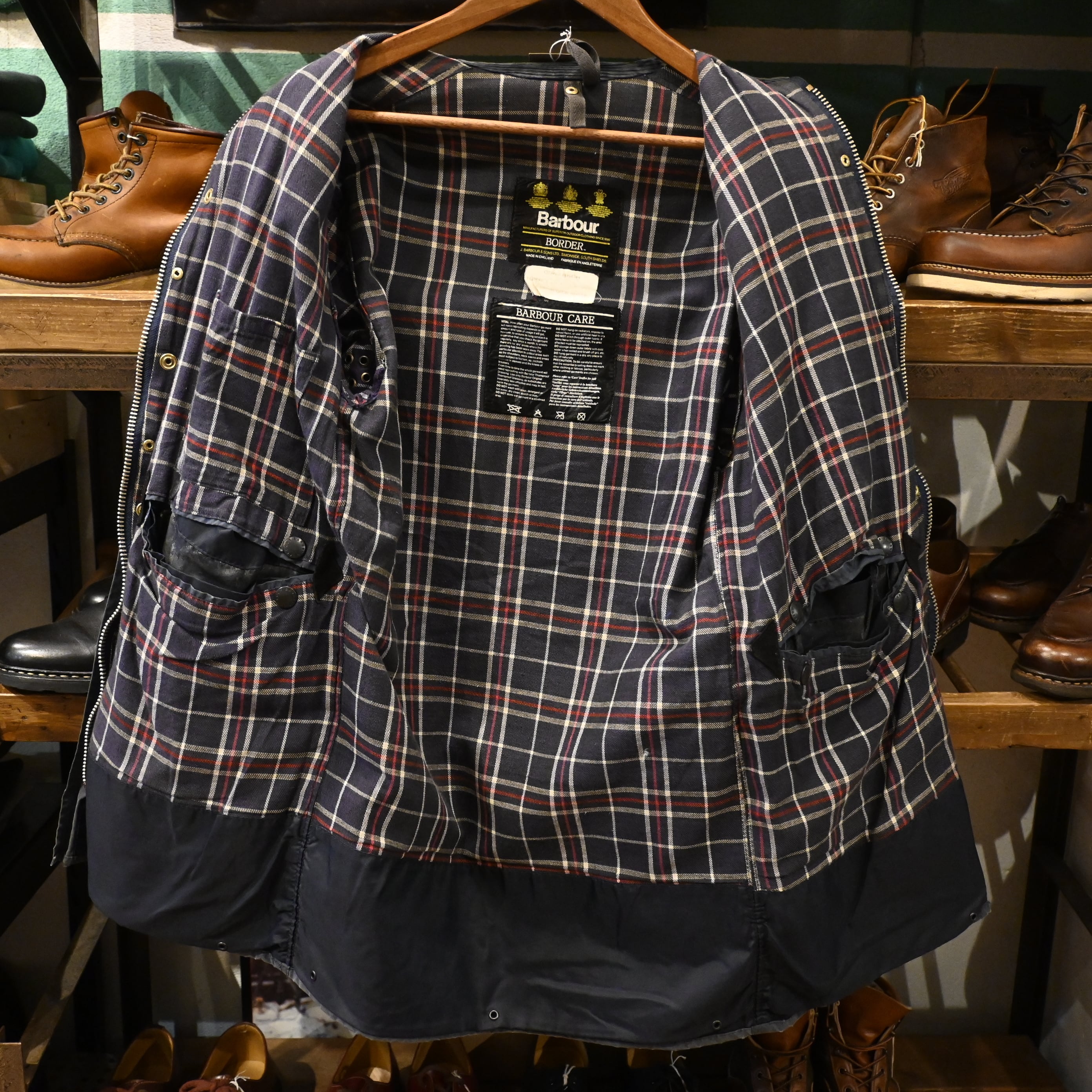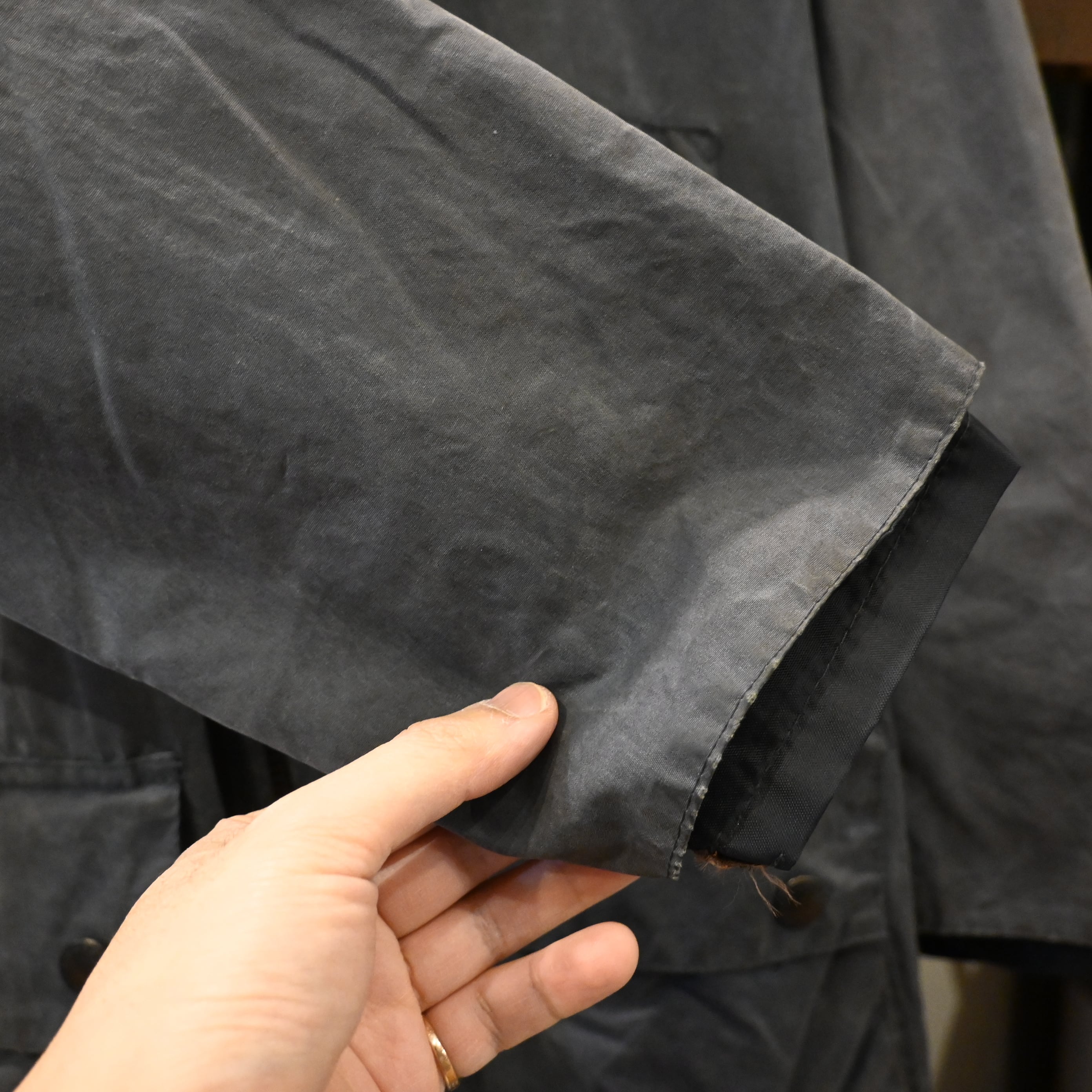 経年によるオイルの抜け感やフェードが見られ、マットで雰囲気のある表情に仕上がっており、ヴィンテージBarbourならではの風合いを楽しんでいただけます。