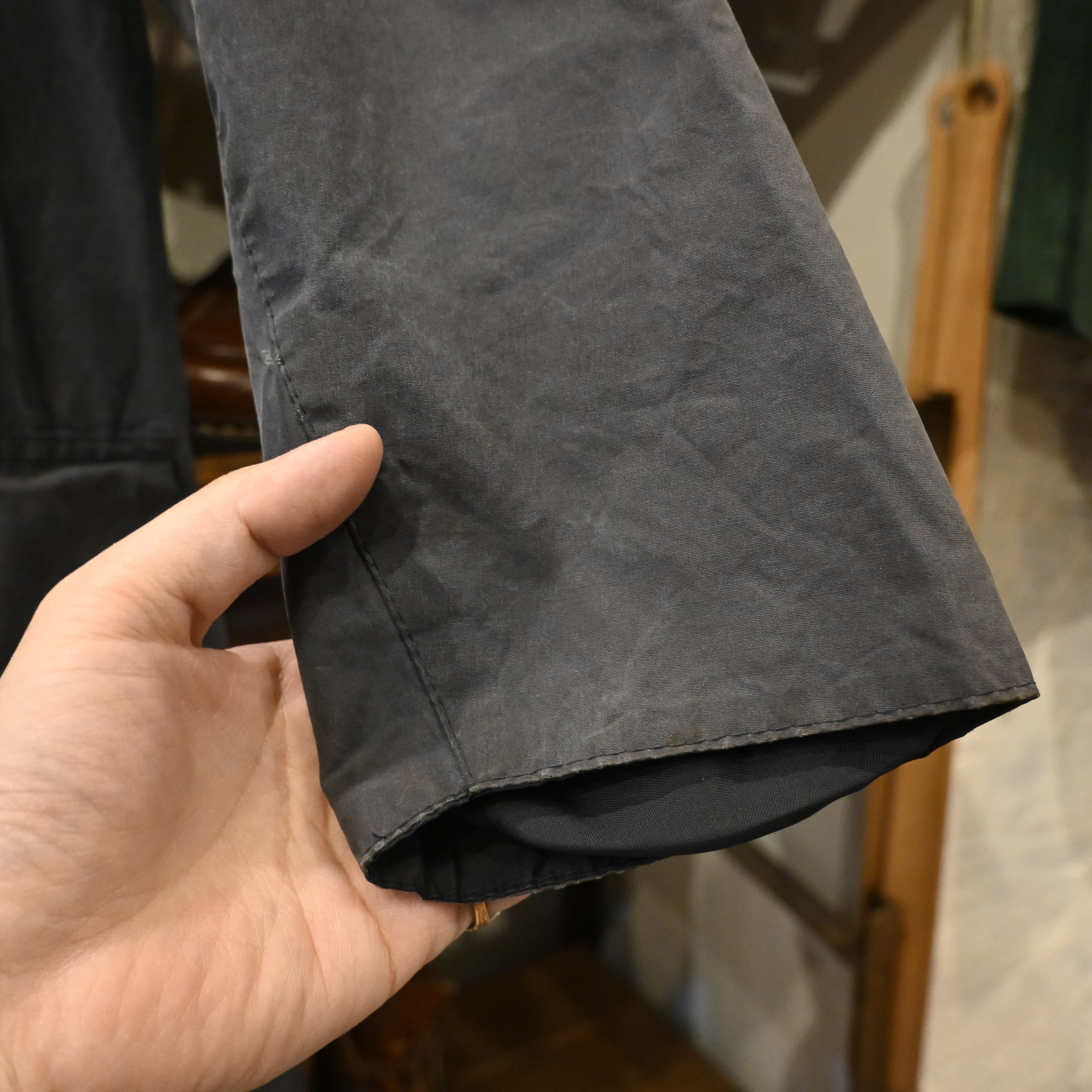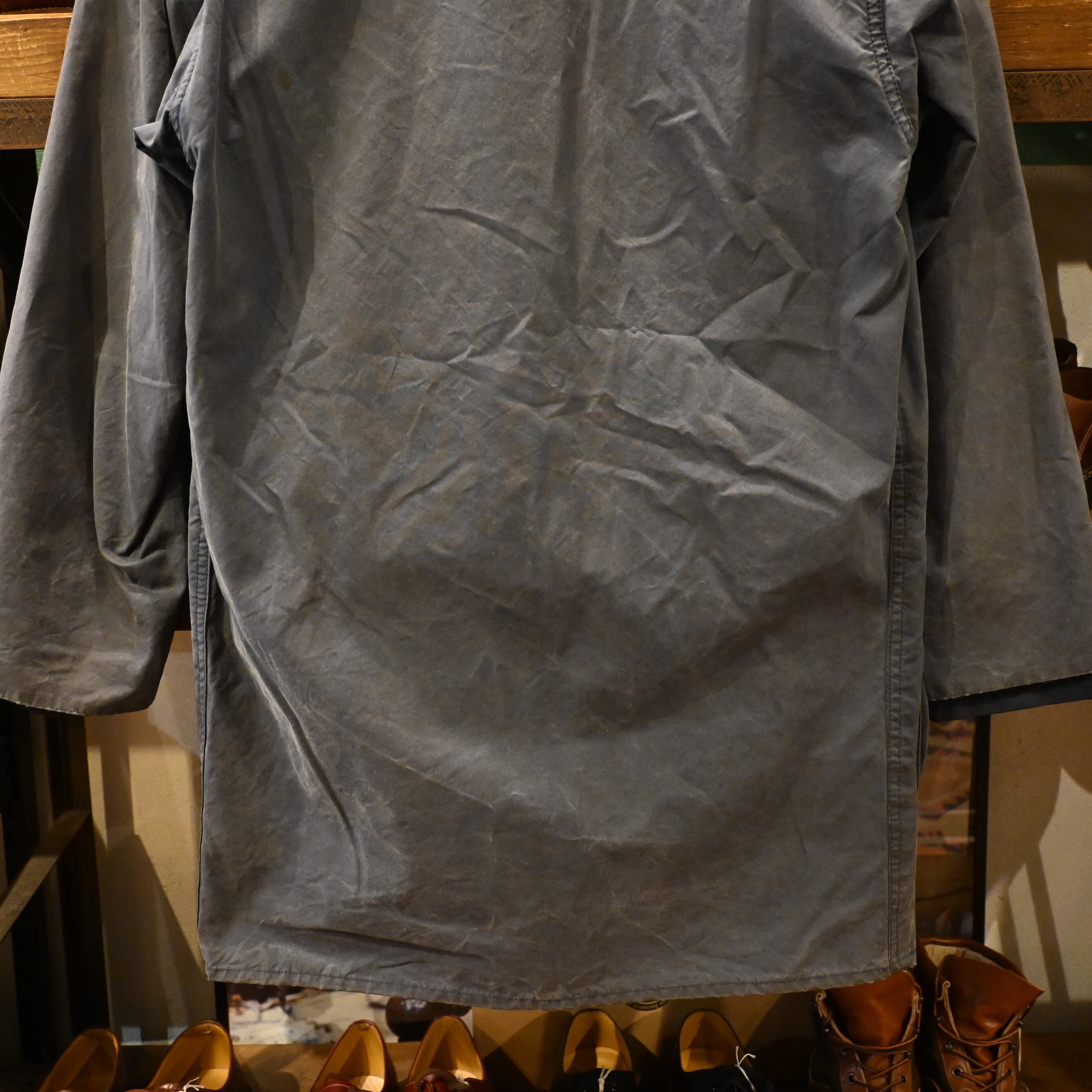 こちらは1990年代のイングランド製、ワックスコットンを使用した本格的なオイルドコートです。