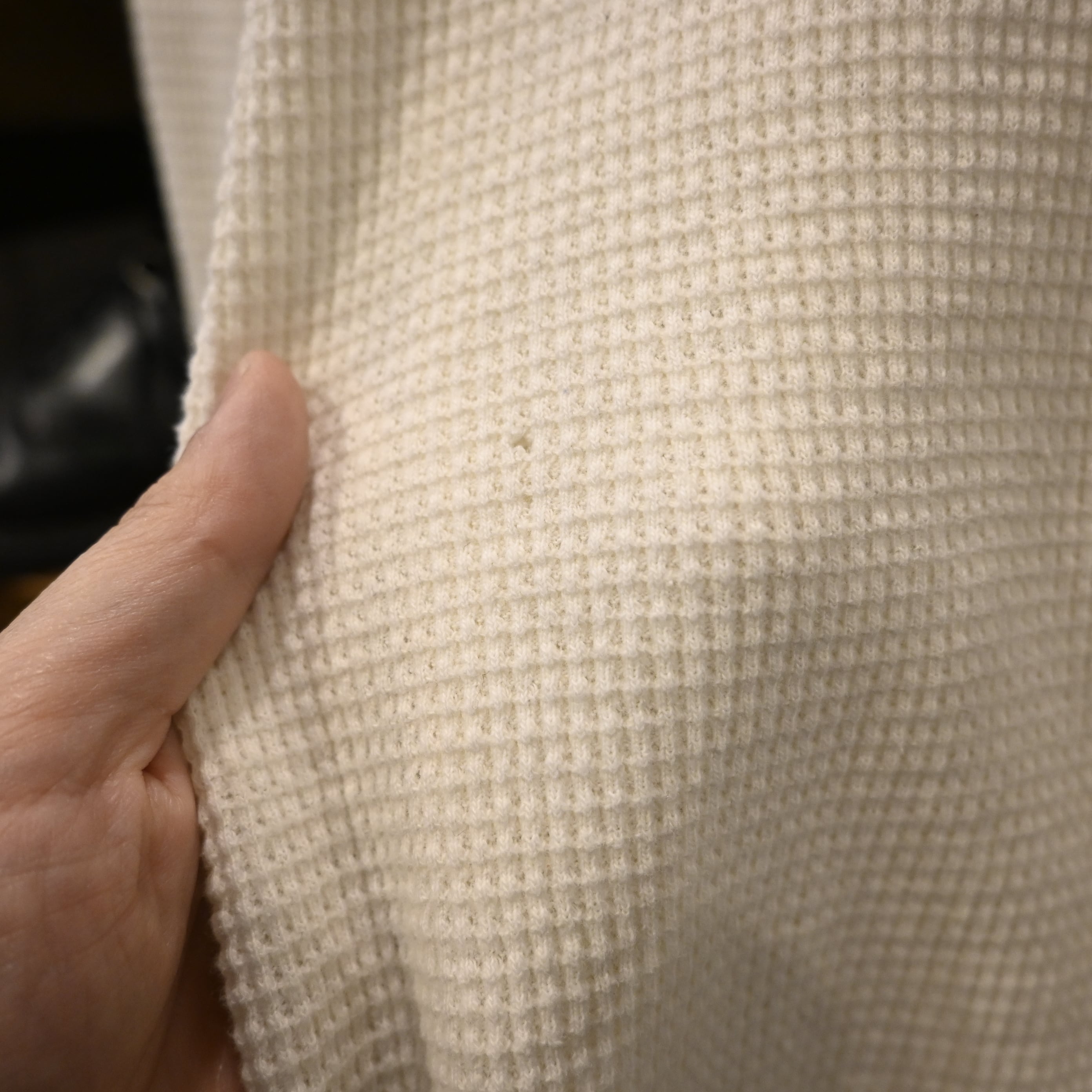 クラシックなワッフル編みのコットン100%素材で、程よい厚みと伸縮性があり、
