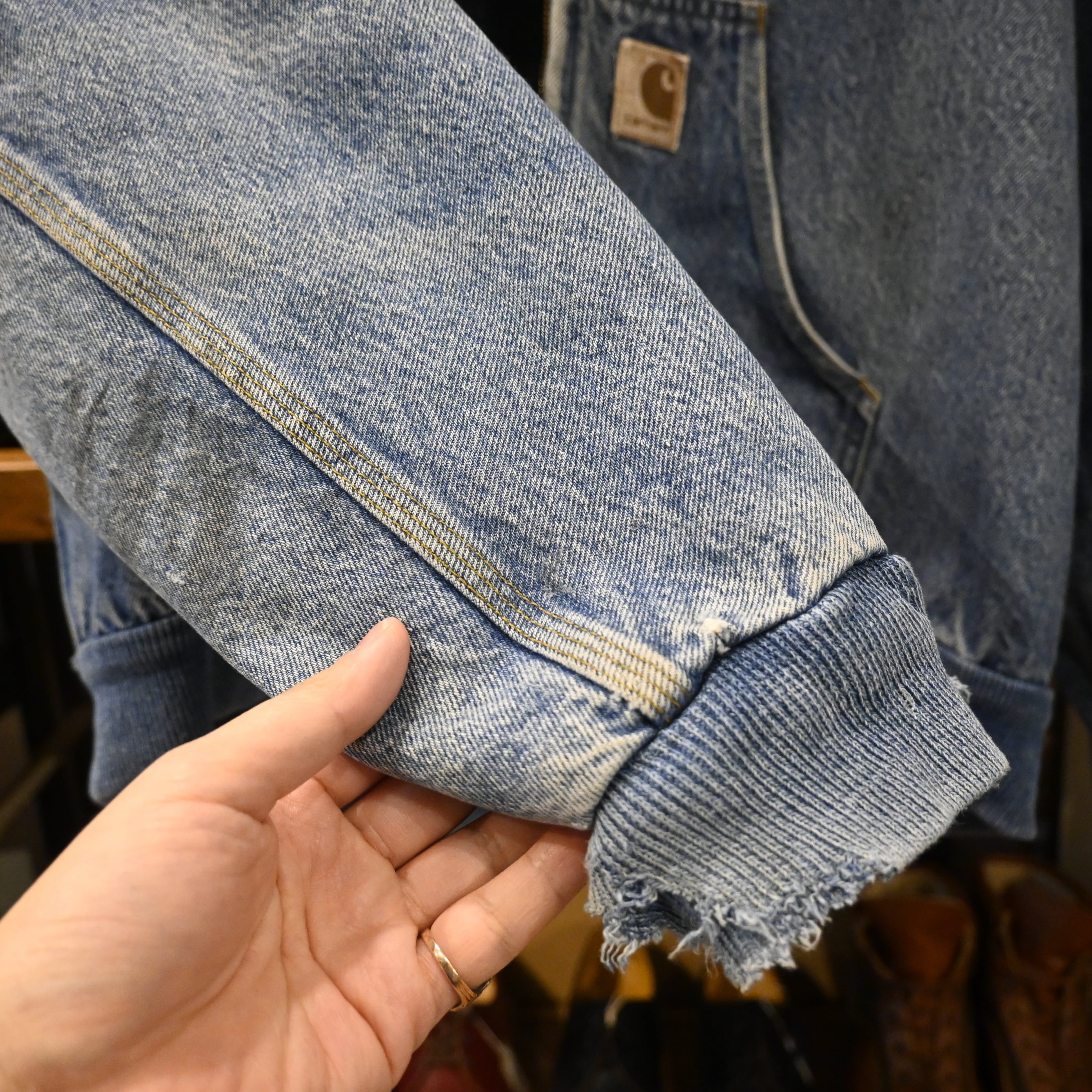 ボディはCarharttらしいヘビーなデニム生地。