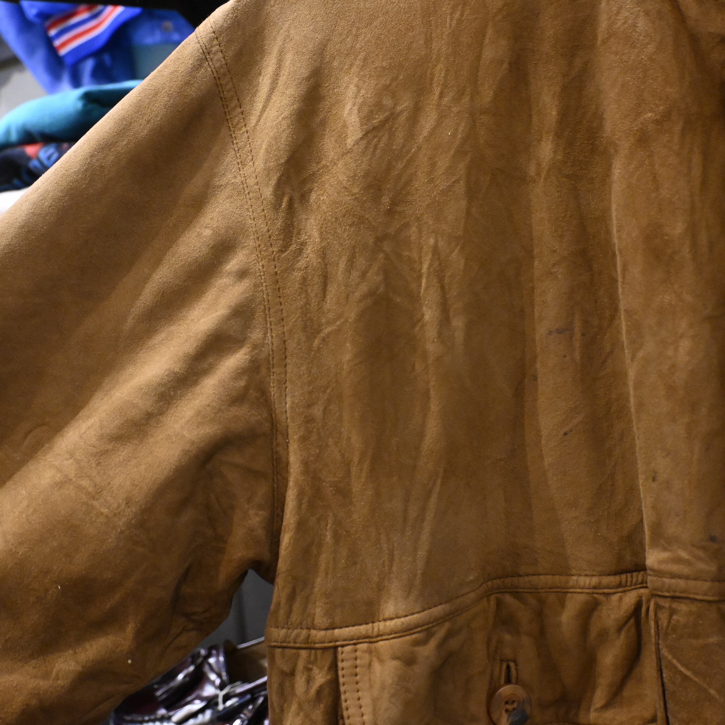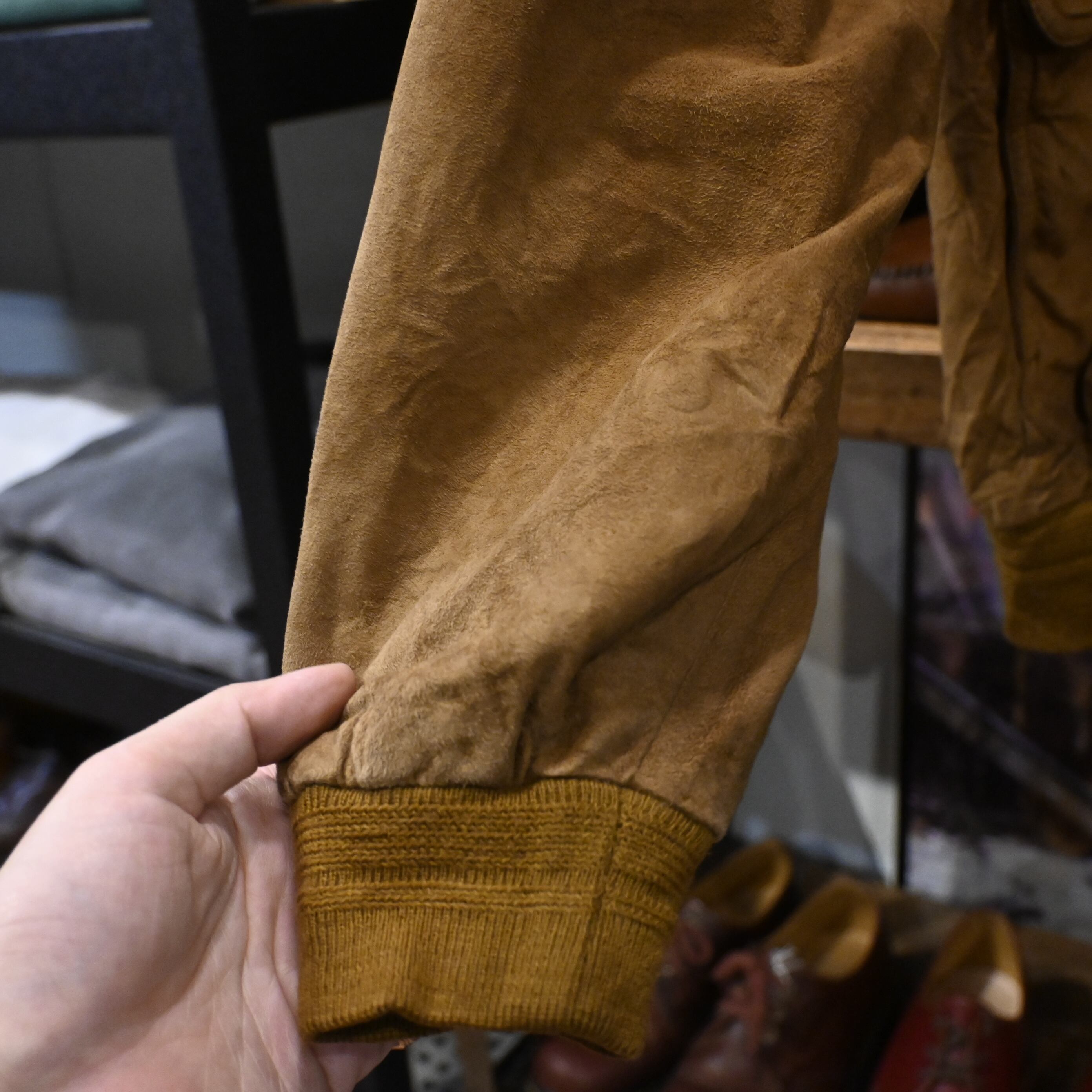 全体的にスエード特有のスレ・色ムラ・シワ感あり。